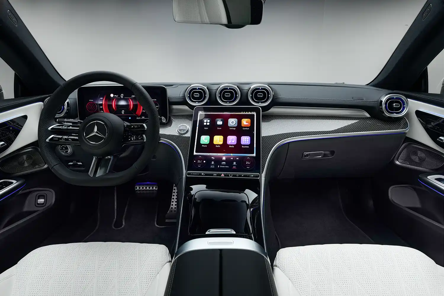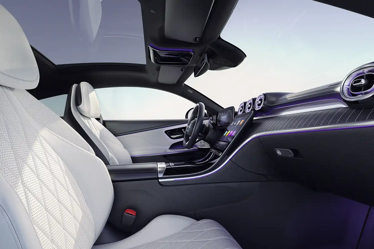 The ENERGIZING Package Plus is optionally available for the CLE Coupé. It offers a comprehensive experience with ENERGIZING COMFORT, ENERGIZING COACH, AIR BALANCE package for scenting, ionising and cleaning the air, seat climate control for the front seats and ambient lighting with programme-specific lighting moods. The feel-good package can also be purchased later as an on-demand function.