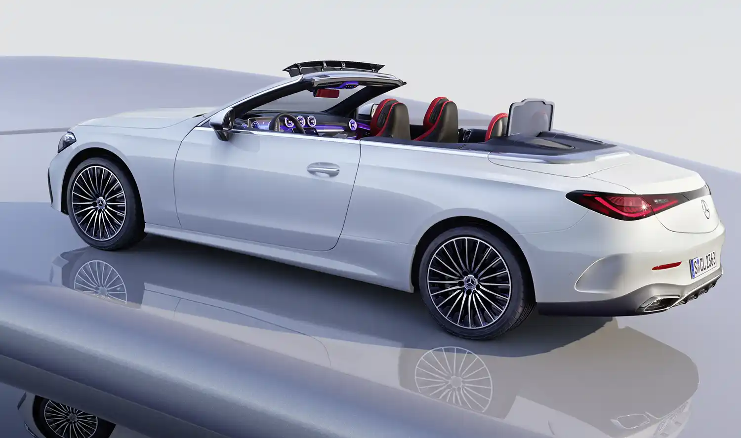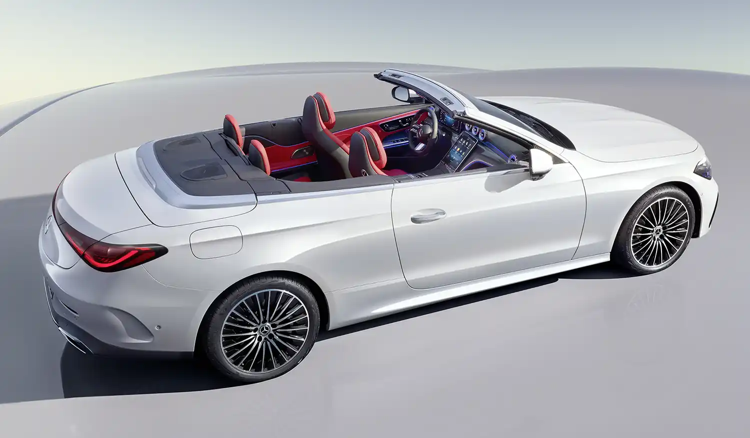 Eye-catchers in the interior are the free-standing 12.3-inch, fully digital instrument display, the 11.9-inch, driver-oriented central display in user-friendly portrait format and the dynamic ambient lighting featuring 64 colours. If desired, it can extend from the centre console to beneath the outer air vents. In each of the doors, a strip of light runs along the contours of the armrest and beltline to the rear. Another highlight is the front seats in integral sport design, developed exclusively for the CLE. In conjunction with the optional Burmester® 3D surround sound system, they each have two loudspeakers at the level of the headrests and thus create a particularly individual and immersive music experience with Dolby Atmos and Spatial Audio close to the ears.