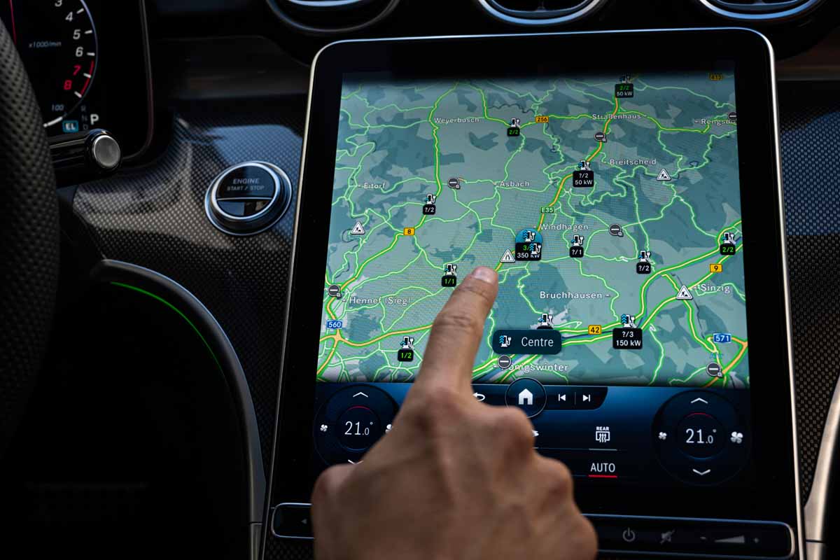 More than 700,000 charging points are available worldwide in the Mercedes me Charge network, around 300,000 of which are in Europe. Mercedes me Charge gives customers access to a wide range of public charging stations located in cities, at shopping centres, hotels, or service stations, for example. The Mercedes me App shows the precise location, current availability, and price at the selected charging station in advance. This information can also be accessed via the navigation system in fully electric vehicles, and is used by the Navigation with Electric Intelligence to calculate a convenient and time-efficient route, including charging stops. At the charging station, authentication takes place via the display in the MBUX multimedia system, the Mercedes me App, the Mercedes me Charge card or directly via Plug & Charge[4]. Everything else is handled automatically through Mercedes me Charge. Customers benefit from the charging contract stored on file. Every charging process is then automatically debited – even those carried out abroad. All charging processes are automatically billed on a monthly basis. Customers in Europe always pay the standard national price, depending on the respective charging speed. This price may differ accordingly from the contract terms in the respective home country. A foreign customer in transit charges on identical terms as a domestic user.
