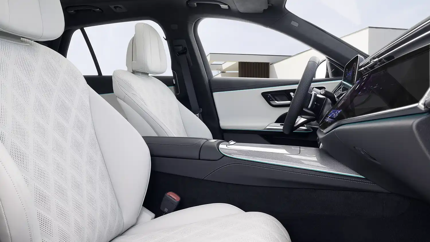 With the new Active Ambient Lighting with Sound Visualisation, occupants in the new E-Class Estate can experience music with three senses: pieces of music and sounds from films or apps can be heard (with Dolby Atmos® technology if desired), felt (by means of sound resonating transducers in the optional Burmester® 4D surround sound system) and now also “seen”. Visualisation takes place on the light strip of the Active Ambient Lighting (optional extra). For the first time, this applies throughout in the E-Class. For example, fast sequences of beats can cause rapid light changes, while flowing rhythms can create softly merging lighting moods.