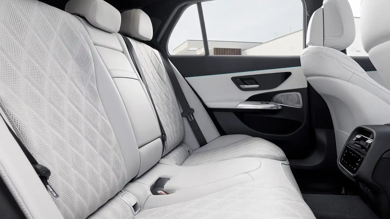 The contours of the seat surface and backrest flow elegantly from the inside to the outside, and appear to float above the base of the seat thanks to their layer design. Indented vertical lines follow the outer contour, widening out towards the top. The association made here by the interior designers was with the organic beauty of shells. If the customer opts for leather upholstery, the seats are designed with elaborate longitudinal fluting, created in individual panels. The nappa leather seats feature quilted and perforated diamond patterns that follow the shape of the seat. The seat with MICROCUT offered as part of AMG Line interior is also perforated.