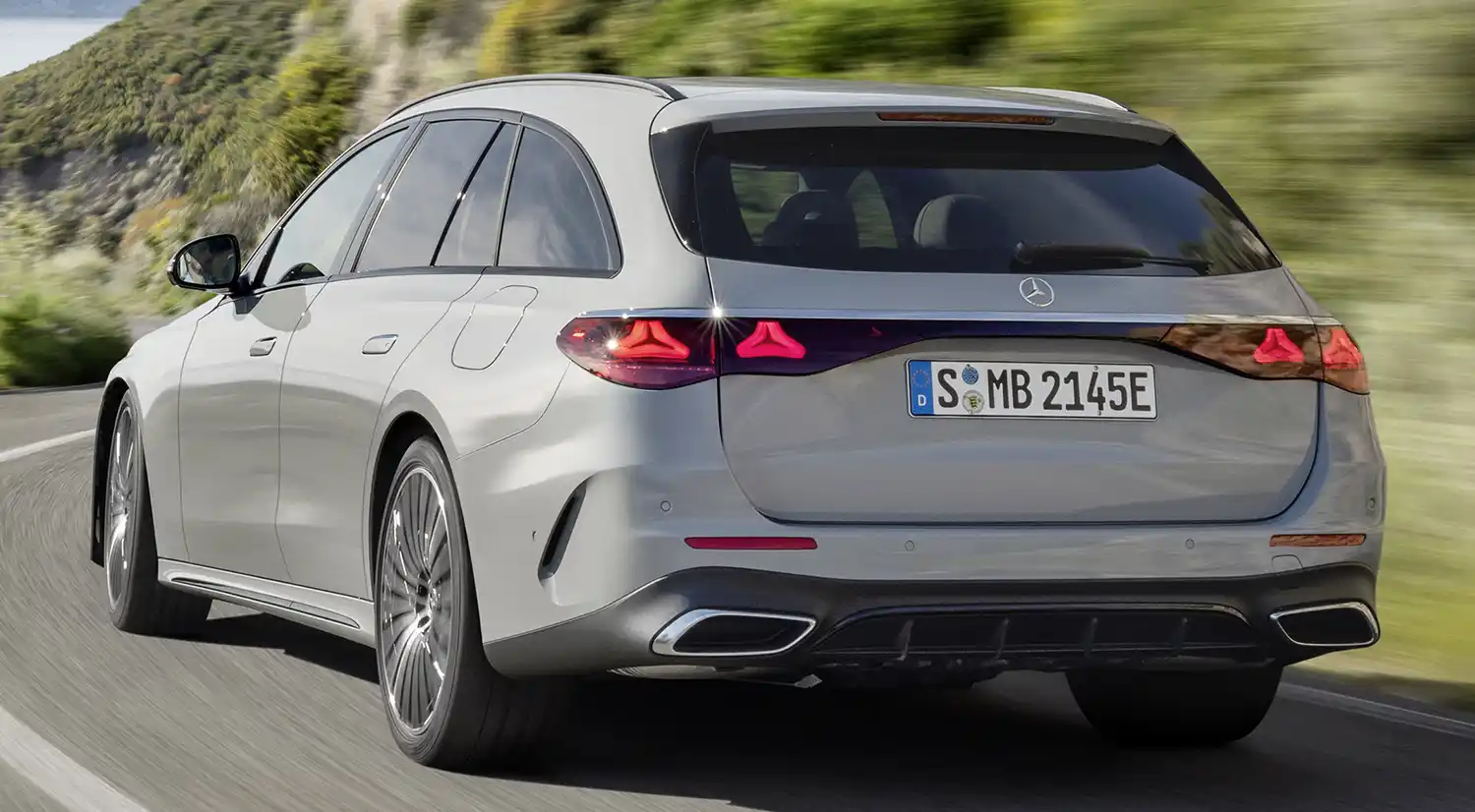 As functional as its predecessor, as intelligent and customisable as never before: The new Mercedes-Benz E-Class Estate, model series 214, impresses in many areas. The design has also changed: The roofline is more dynamically designed compared to its predecessor, and at the same time the new E-Class Estate scores again with functionality and load compartment volume. Combined with the raked rear window, the overall appearance is progressive.