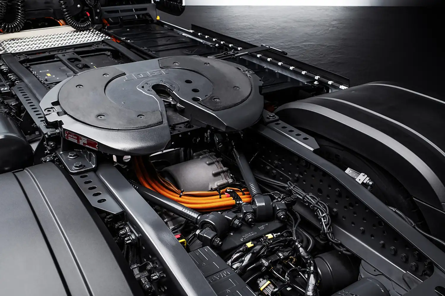 Mercedes-Benz Trucks has developed two power take-offs for the eActros 600. The electric-mechanical power take-off makes it possible, for example, to operate hydraulic or mechanical work equipment such as tipping, sliding floor or silo semitrailers. Another solution is the electric DC or AC power take-off. In the case of the latter, an inverter converts the direct current from the high-voltage network into alternating current. This means that solutions for refrigerated bodies or refrigerated semitrailers can be operated, for example. Depending on the version, the various power take-off applications cover a power range from 22 to 90 kW, thus serving all common uses in long-distance and distribution transport. Today’s tried-and-tested standard industrial interfaces will remain available ex works in the eActros 600. The advantages of these solutions compared to previous diesel-based operation are in particular the local CO2-neutrality as well as the greatly reduced noise generation, which is particularly relevant for use in cities and residential areas. The compact design of the systems still allows the eActros 600 to be operated as a semitrailer tractor with standard semitrailers – a great added value for transport operators who use the vehicle for a wide range of applications.