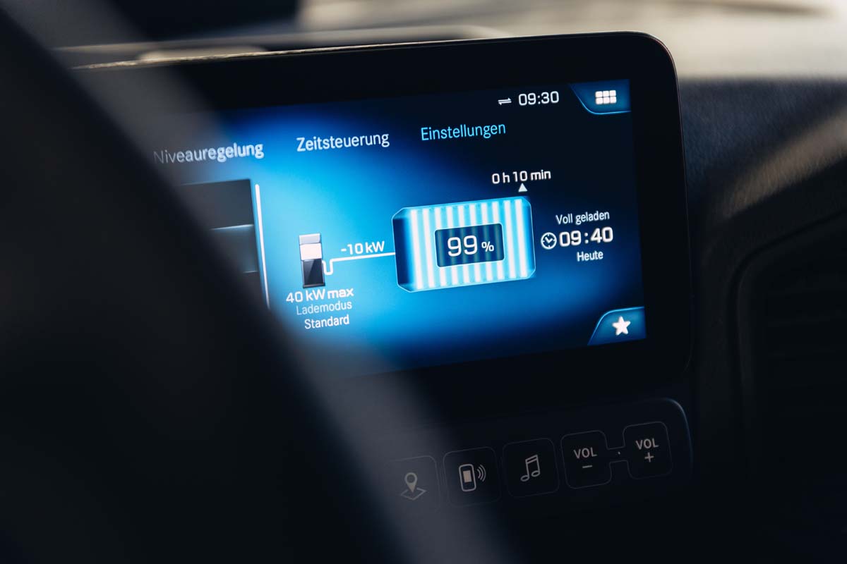 Depending on the version, the eActros draws its power from three or four battery packs – each with a capacity of around 105 kWh[3]. Thanks to a maximum capacity of 420 kWh2, a range of up to 400 kilometres1 is realistic. The eActros can be charged with up to 160 kW: When connected to a regular 400A DC charging station, the three battery packs need a little longer than 1 hour to charge from 20 to 80 percent[4]. “Thus the eActros is perfectly equipped for its daily operations in distribution transport with regard to availability and performance,” von Wallfeld adds.