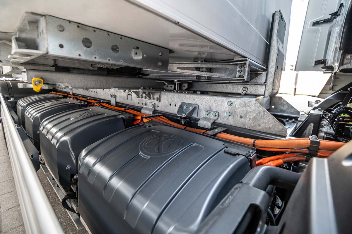 At the technological heart of the eActros is the drive unit with two integrated electric motors along with a two-speed transmission. Both motors provide for impressive ride comfort and great vehicle dynamics, while the quiet and emission-free electric drive means the truck can also be used for night deliveries and entry into inner-cities with driving bans for diesel vehicles.