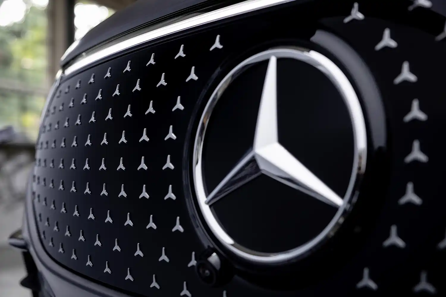 With a newly designed black panel surface with its star pattern[2] at the front, the EQA and EQB visually catch up with their larger model siblings. A light band connects the daytime running lights of the headlights while a new bumper emphasises the broad effect of the vehicle front. The designers have also changed the insides of the taillights. The innovations in the interior include the current-generation steering wheel with touch control panels as well as the trim in brown lime open-pore wood[3], Mercedes-Benz pattern[4] and backlit Mercedes‑Benz pattern[5].