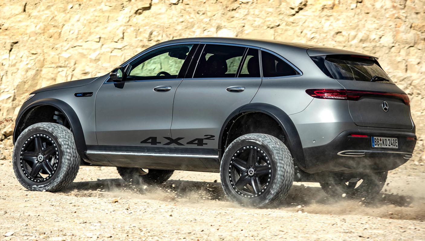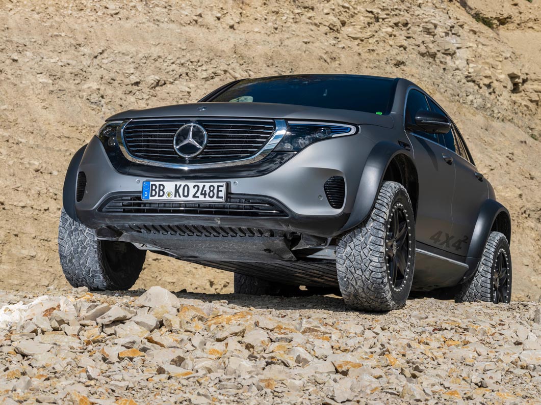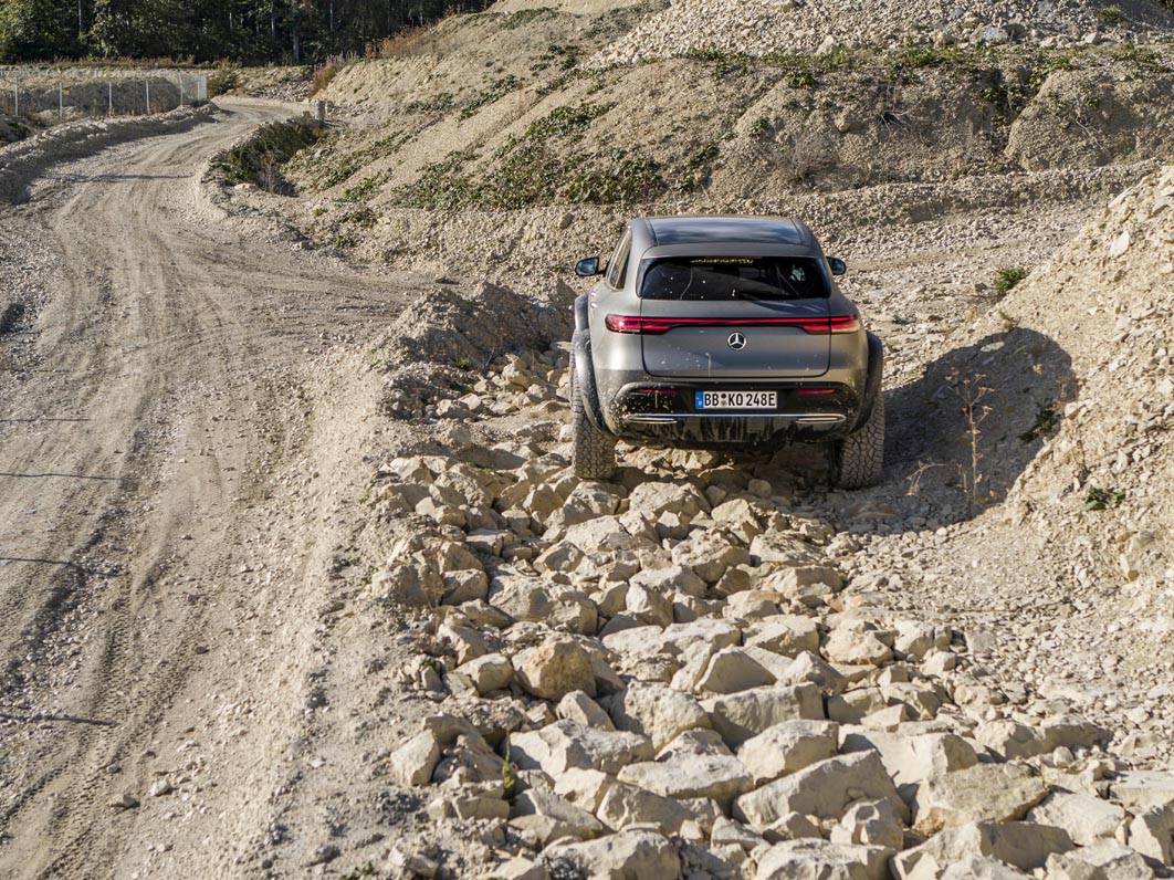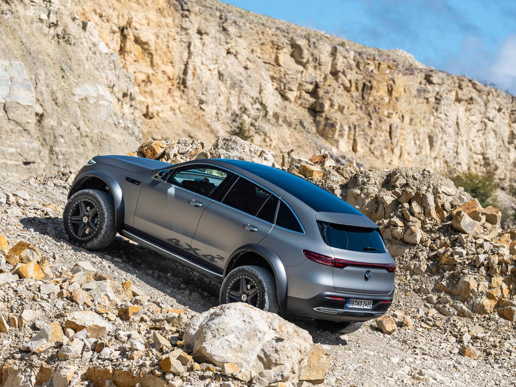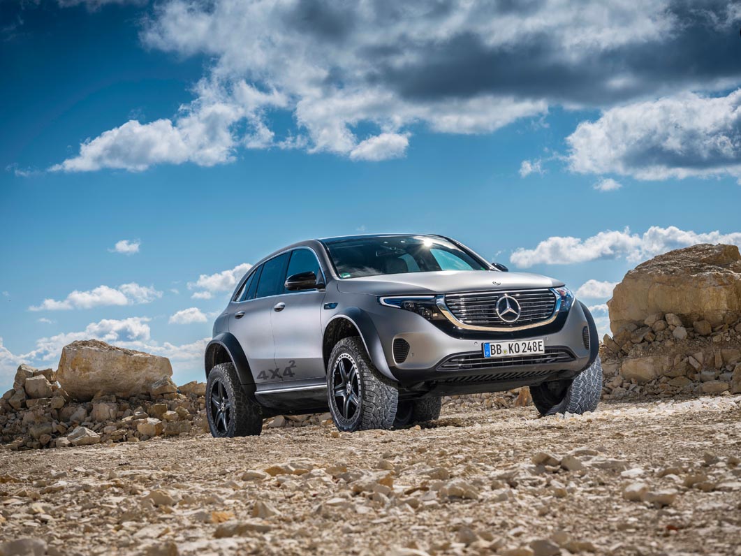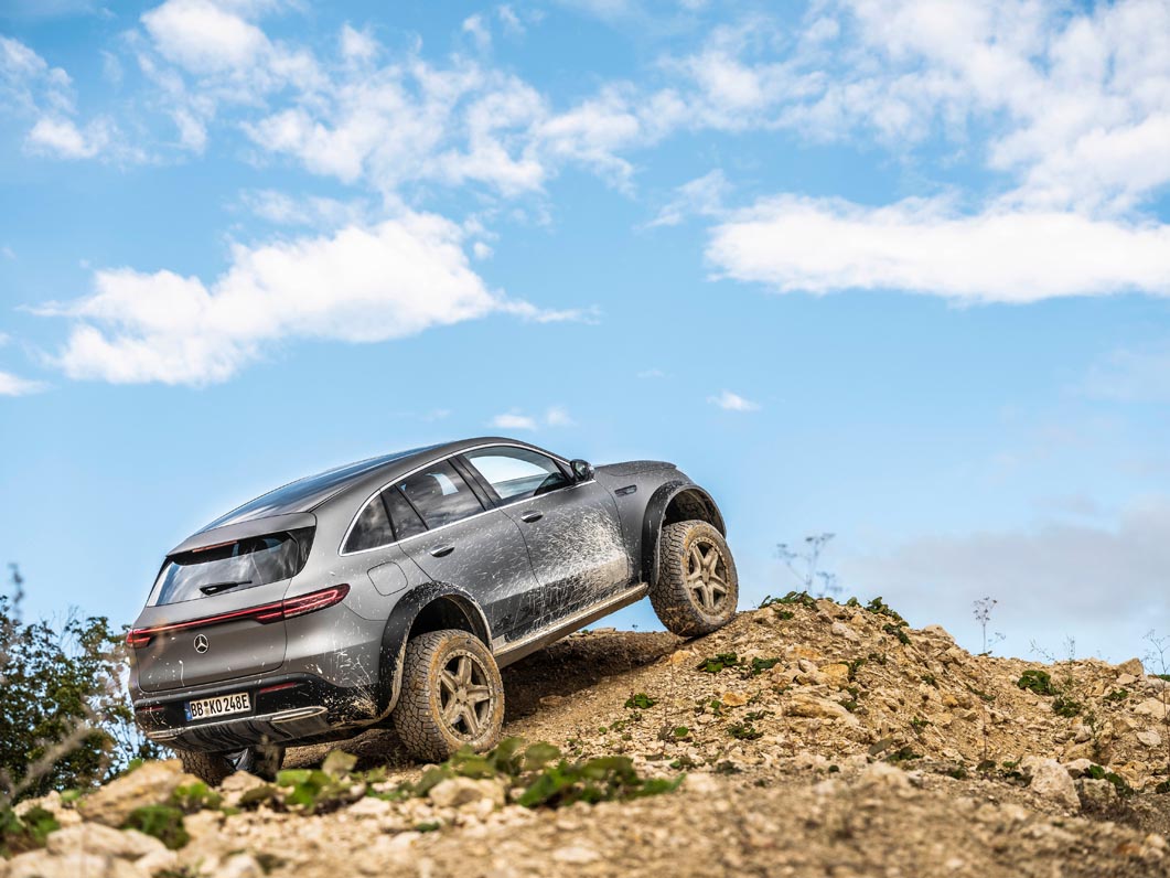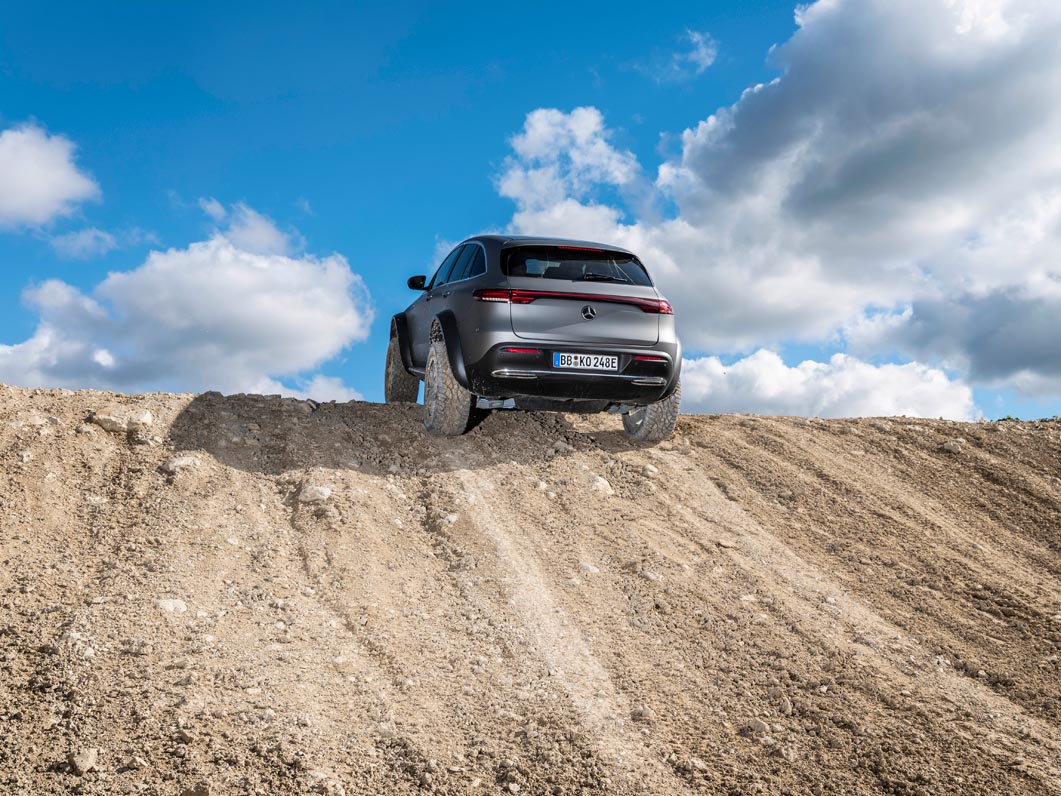 With the EQC 4×4² as a technology platform, Mercedes-Benz is demonstrating that love of adventure can be combined with lifestyle and sustainability. Its capabilities include driving through sand in desert regions and on beaches, on rocky terrain and through mountain streams.