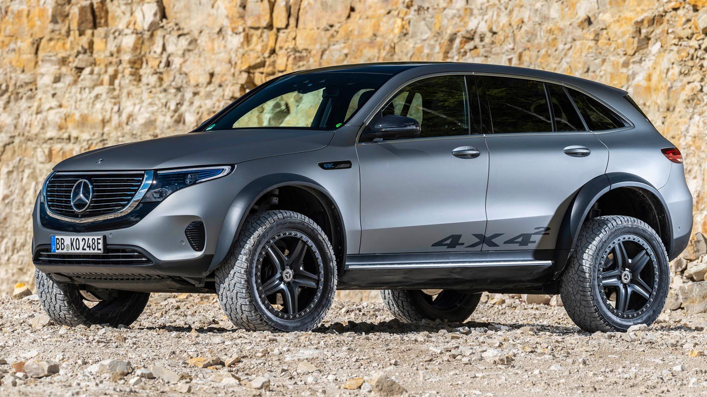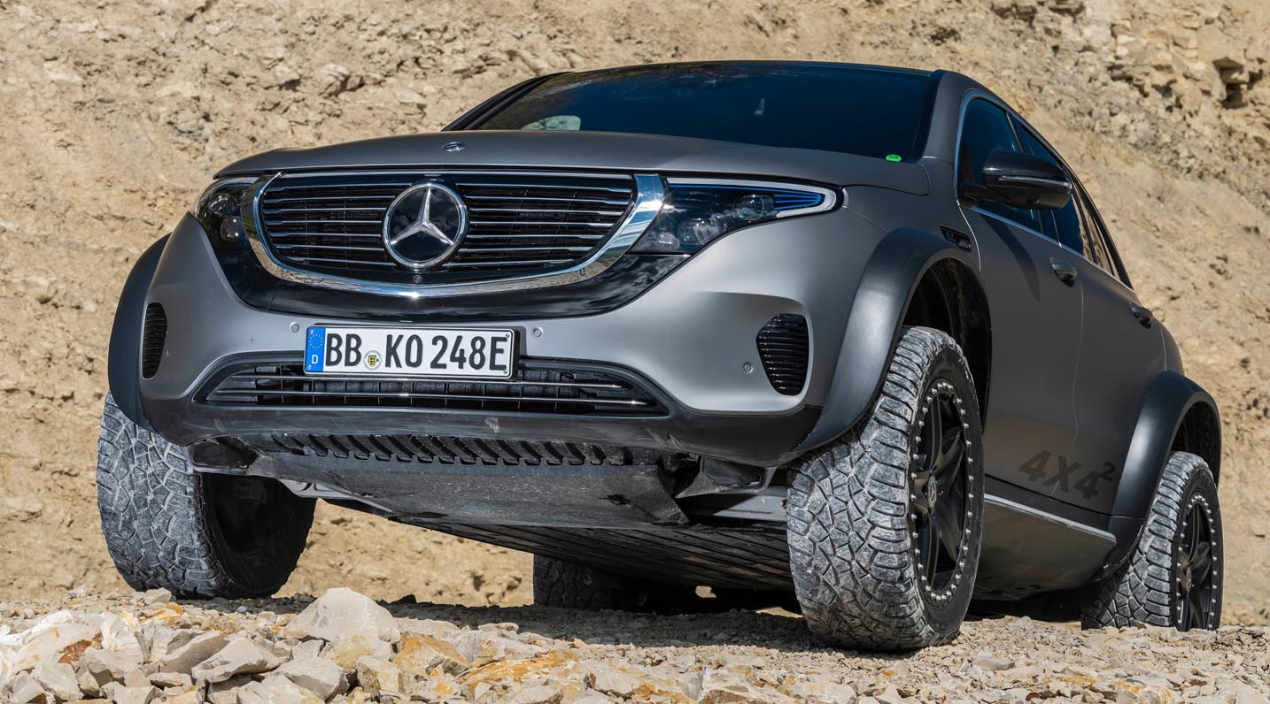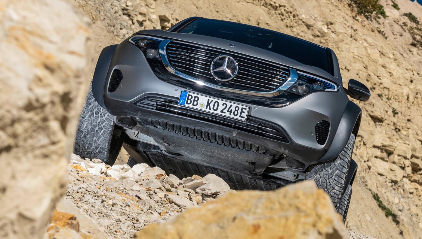 Emotive appearance, sure-footed on rough terrain and with future-oriented technology: the EQC 4×4² shows that electrification at Mercedes-Benz already goes farther than the road network. A small team of dedicated developers has created this drivable technology platform on the basis of an EQC 400 4MATIC.