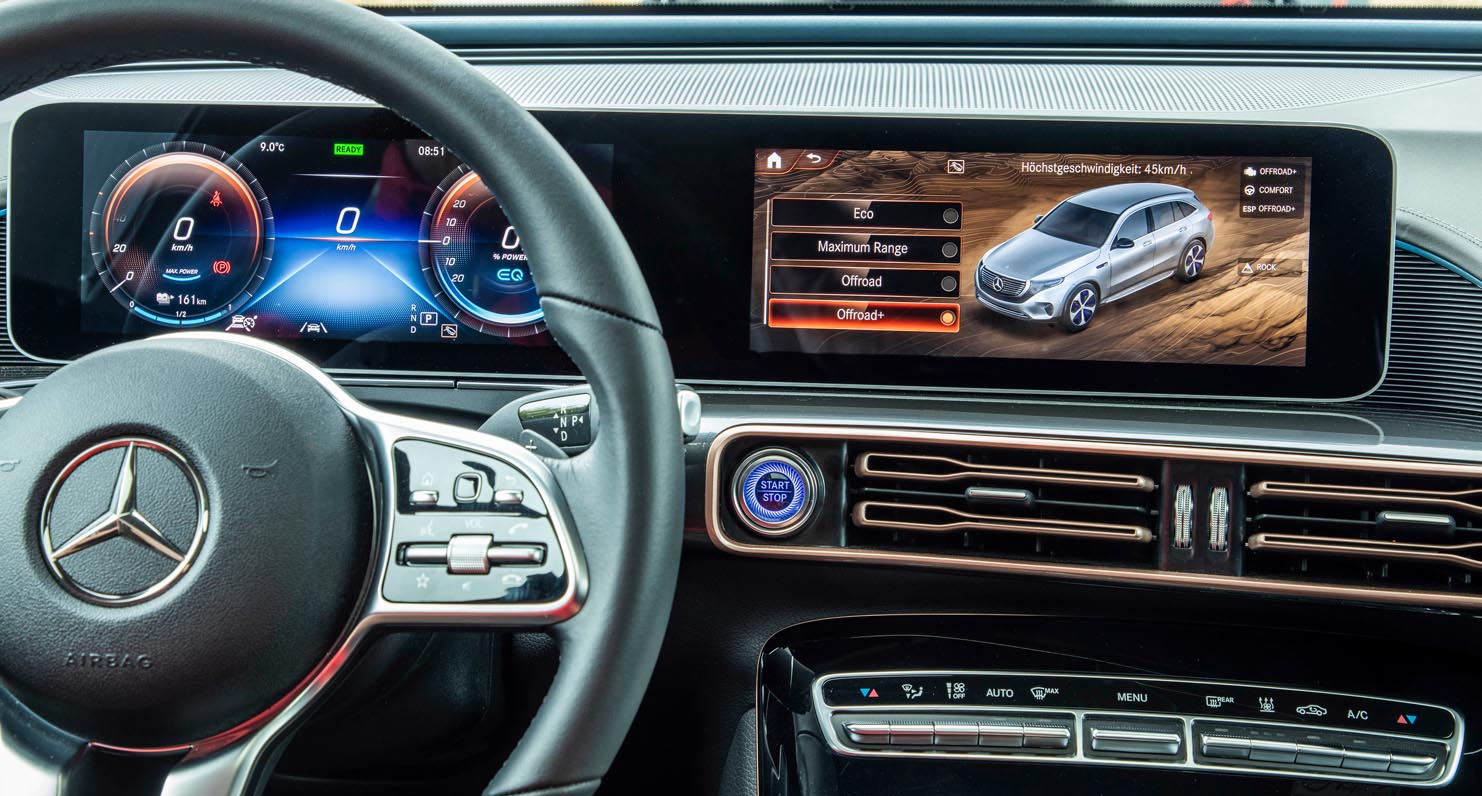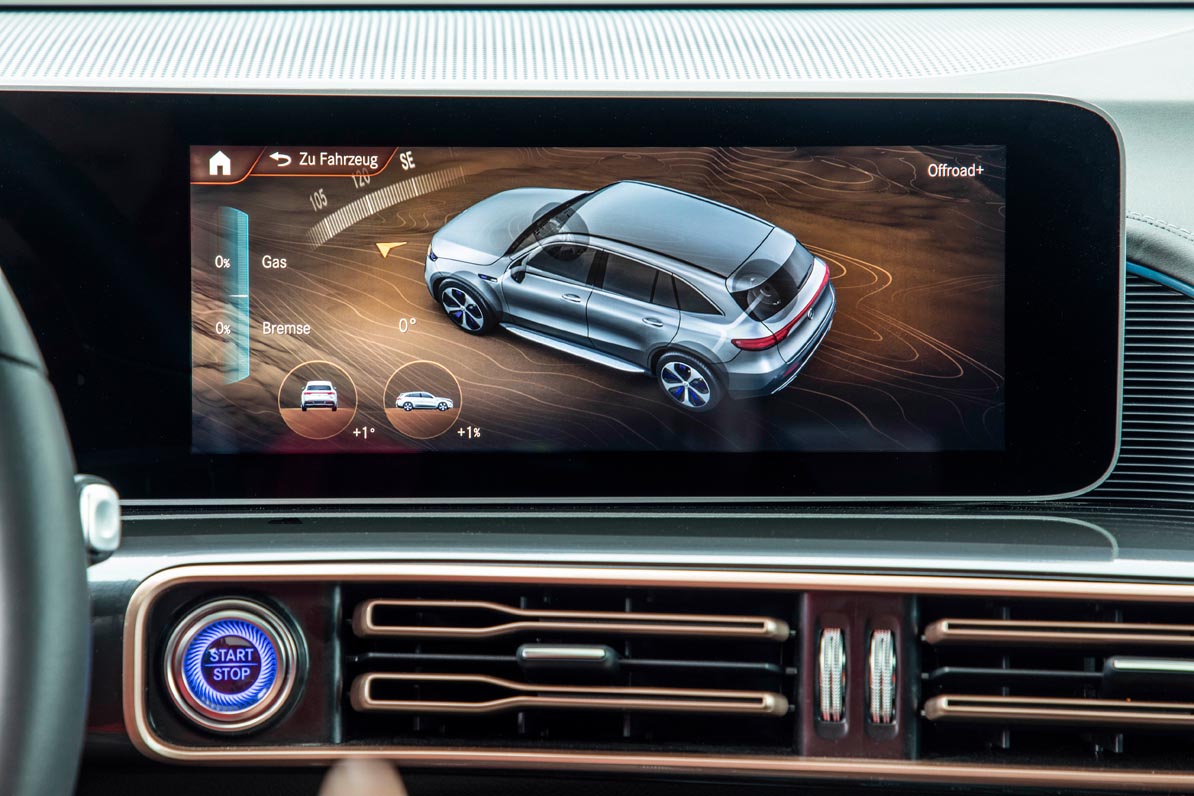 Another highlight of the EQC 4×4² is the sound experience with its own soundscape. The acoustic production comprises sounds that give the driver feedback on system availability and vehicle parking, as well as an interactive, emotionalising driving sound.