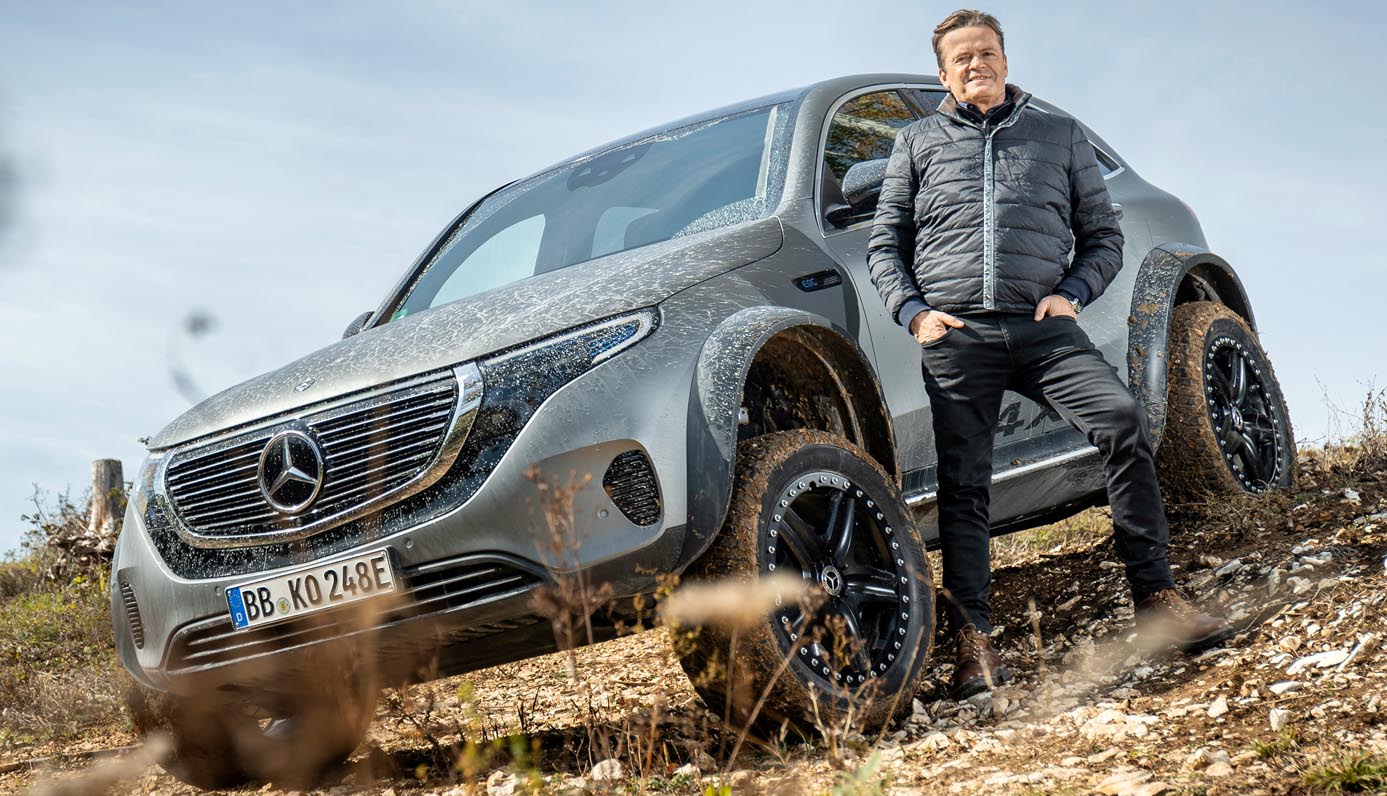 The EQC 4×4² is an electric car of extremes. Mercedes-Benz wishes to test the limits with this vehicle, and show that e-mobility is not just urban, but also conceivable off-road. The one-off was developed by a cross-departmental team under development engineer Jürgen Eberle which has already put the E 400 All-Terrain 4×4² on its studded wheels. “Our aim is to combine modern luxury and sustainability with emotional appeal.