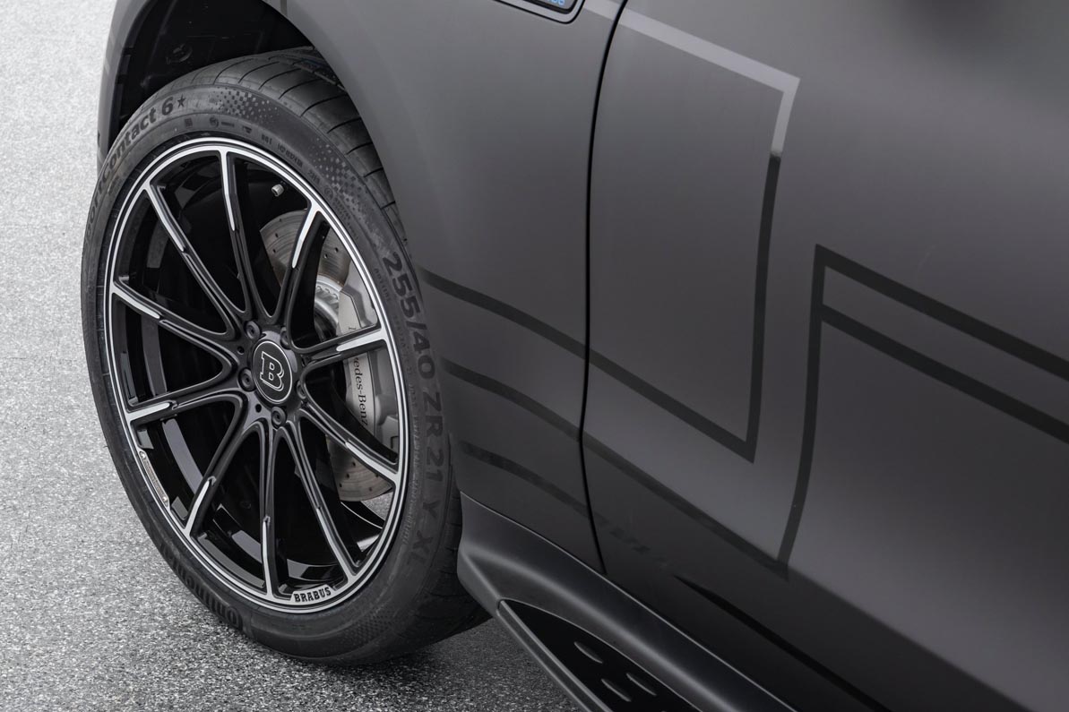 While the aerodynamic-enhancement kit with the exception of the already available rear spoiler is still under development, the looks of the electrically powered SUV can already be upgraded with tailor-made BRABUS Monoblock Z alloys with diameters of 20 or 21 inches.