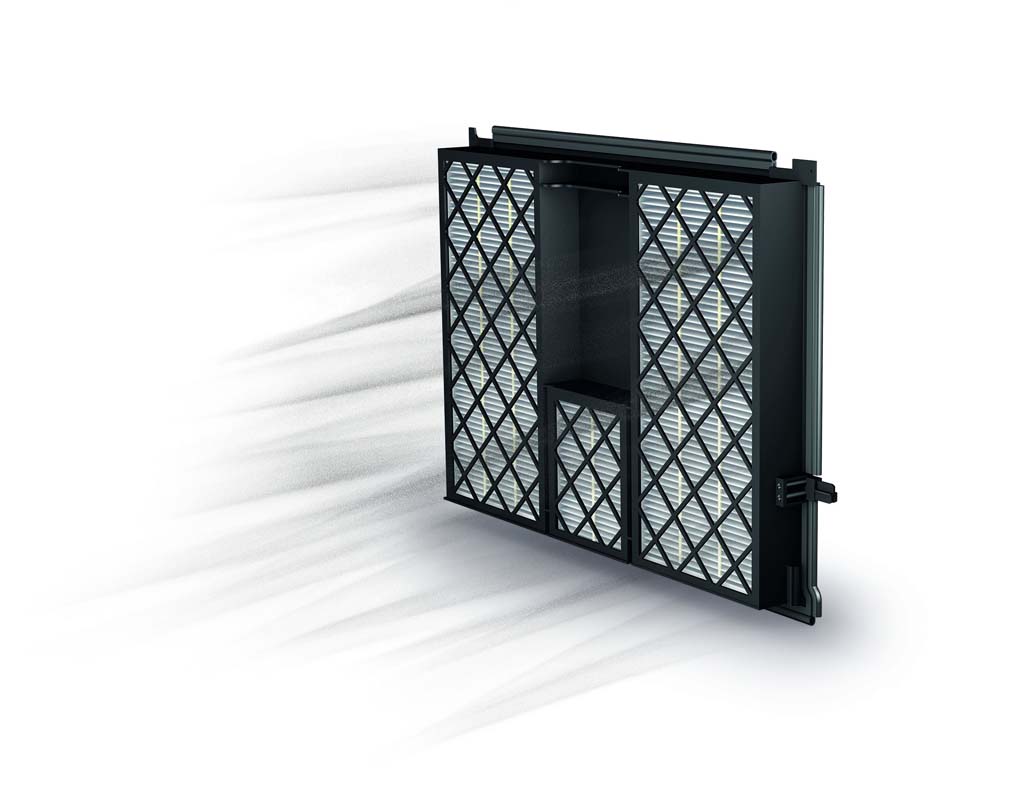 In the pilot project with the Österreichische Post, the filter integrated in the front module of the SUSTAINEER is currently being tested. It filters fine dust out of the air in combination with the suction fan already in the vehicle. In this way, it not only improves the air quality by means of the airstream. It filters fine dust out of the ambient air even at low driving speeds and during the charging process. In addition, the vehicle is fitted with a fine particle sensor. This measures the fine dust concentration in the air and can control the filtration performance accordingly. This also allows the vehicle to be used as a mobile monitoring station. The filter elements can easily be removed and replaced during annual servicing.