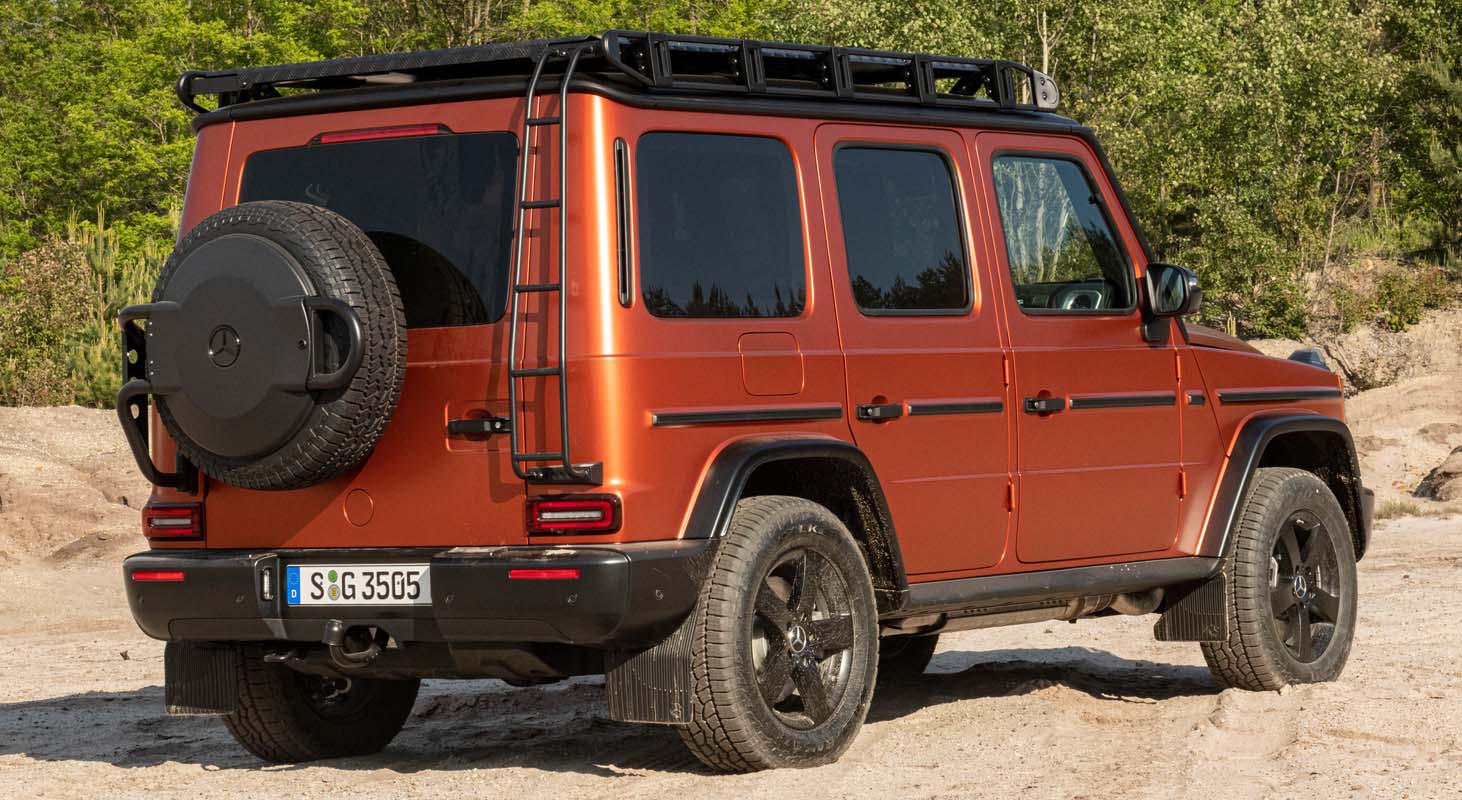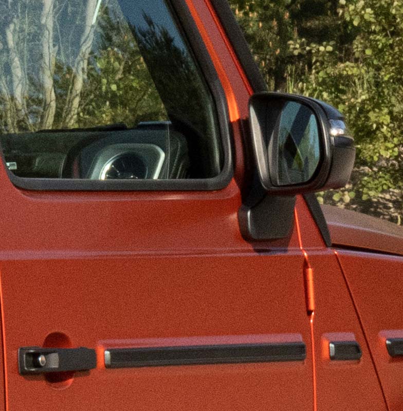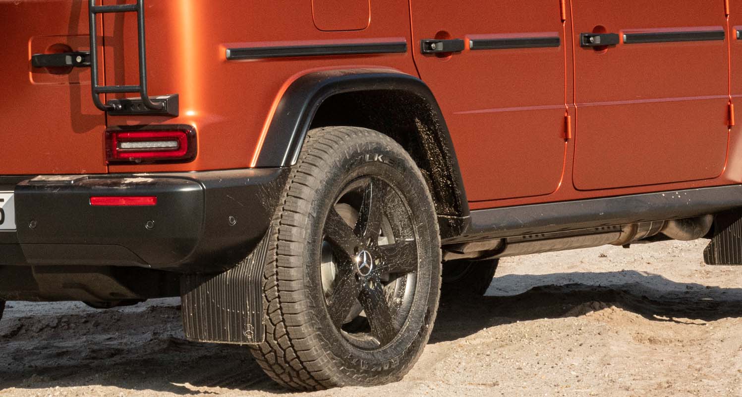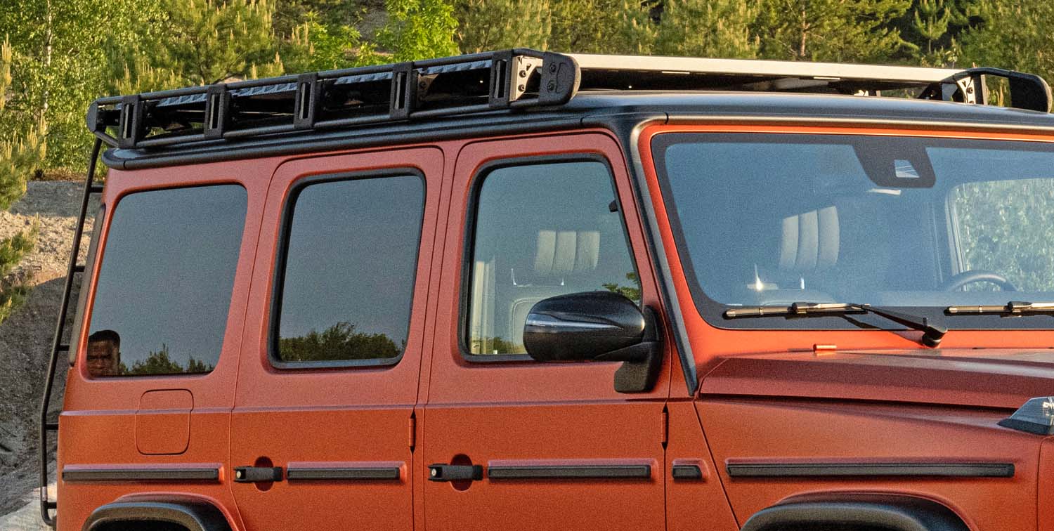 The G manufaktur copper orange magno paintwork makes the PROFESSIONAL Line Exterior displayed at IAA MOBILITY particularly eye-catching, contrasting handsomely with the roof, bumpers and wheel arch extensions in G manufaktur night black magno. Other features include the PROFESSIONAL spare wheel holder on the rear door and the PROFESSIONAL roof rack on which, among other things, a roof tent can be erected, transforming the G-Class into an off-road camper van. Like the wheels, these two PROFESSIONAL options are finished in matte black for a harmonious overall appearance. The exterior mirror housings, Mercedes star and number plate are also finished in black as part of the optional Night package. Inside, the black leather upholstery and open-pore ash veneer with black tinting underline the high degree of the G-Class’ opportunities for individualisation.