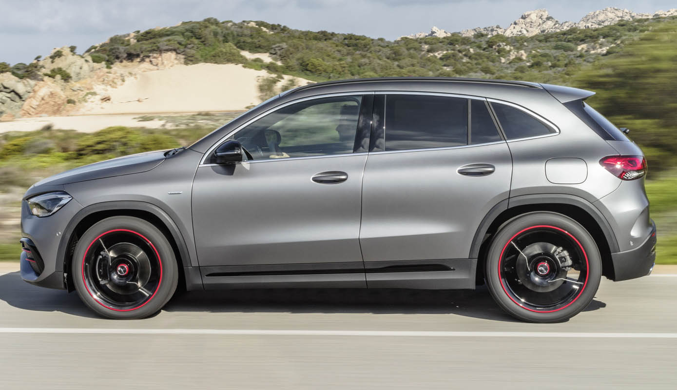 Top of the line is the Mercedes-AMG GLA 35 4MATIC The 2.0-litre four-cylinder turbo engine has an immediate response to accelerator pedal commands, high tractive power (400 Nm max. torque from 3000 rpm), a supremely lively response and an emotive engine note. The crankcase made of high-strength, lightweight die-cast aluminium reduces the vehicle weight where it matters most for driving dynamics. A twin-scroll exhaust gas turbocharger is used for turbocharging. It combines optimum responsiveness at low engine speeds with a strong power increase at higher speeds.