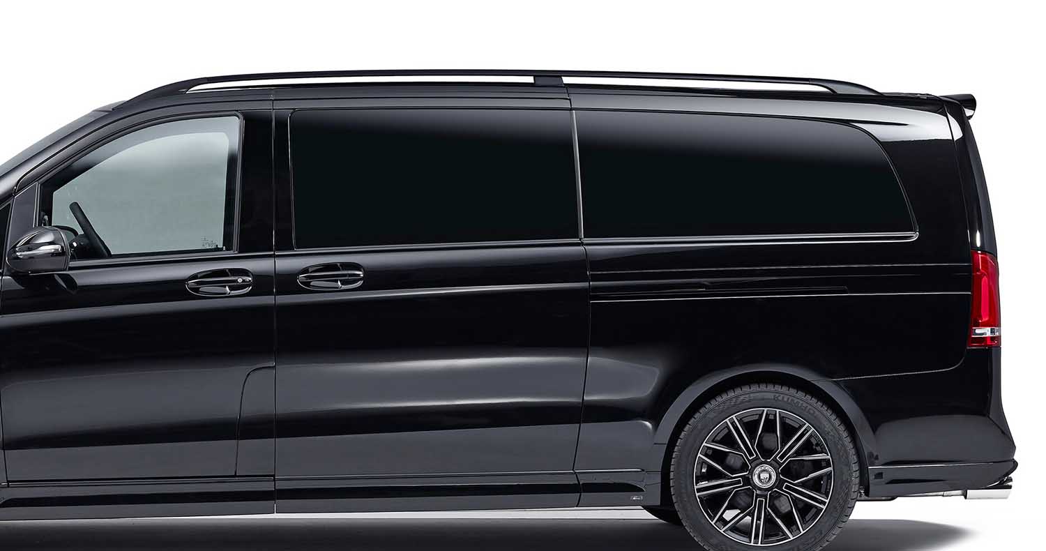 The exterior of the van is upgraded by the sophisticated manufacturer from Winterlingen with a few, but very effective design components: Alone the front spoiler bumper with the integrated LED daytime running lights combines aesthetics and function and ensures a great deal of overtaking prestige.