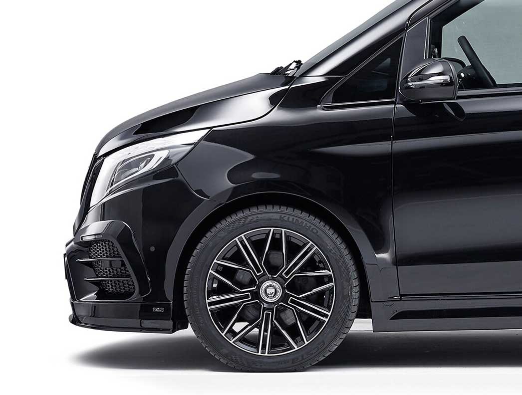 Although the exclusive body programme is currently only available for the “extra-long” model variant of the V-Class, tailor-made versions for the “compact” and “long” vehicle dimensions are already being prepared. The new star in the retrofit wheel programme, the LUMMA CLR LR 19 GT sports wheel is already available and is suitable for all body lengths.