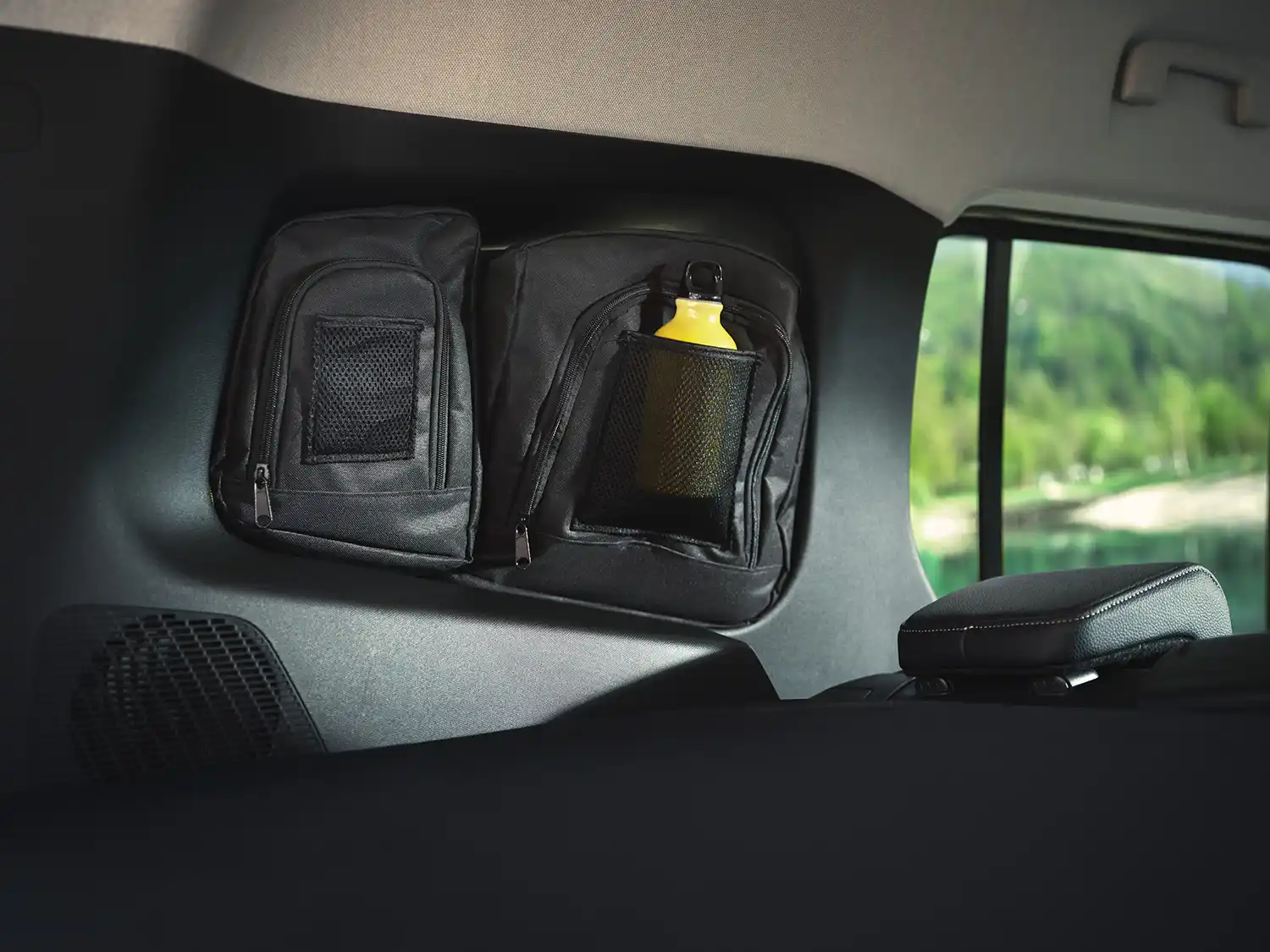 [1] The other camping equipment such as ventilation grids, blackout elements, table and chairs must be stowed safely in the designated storage areas during the journey.