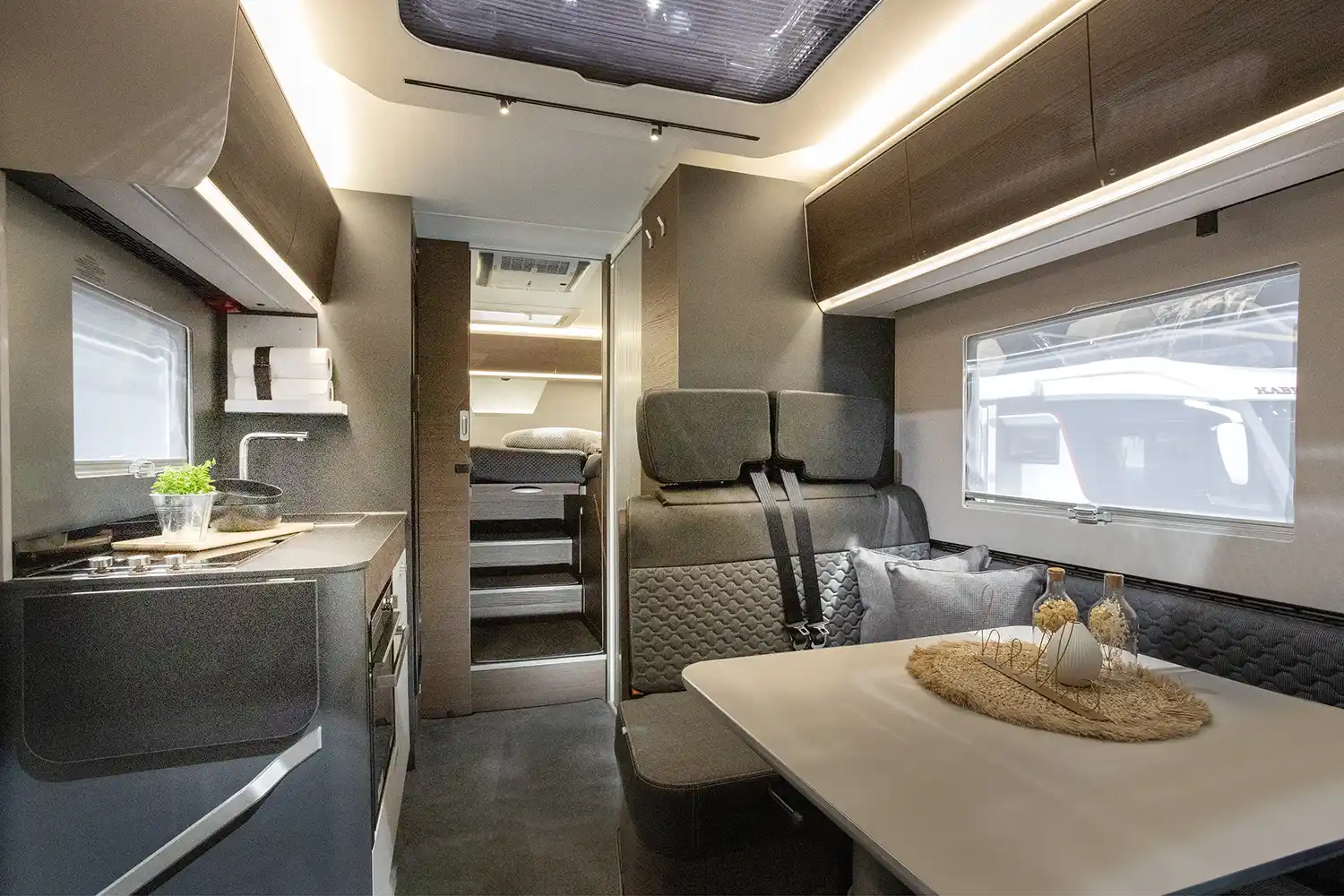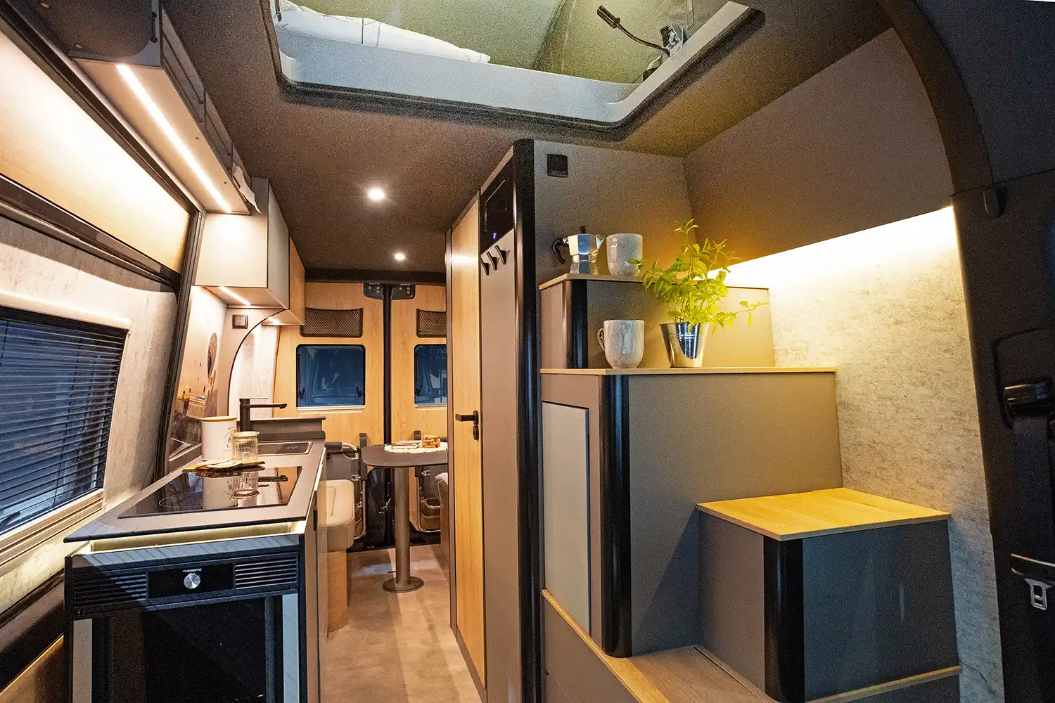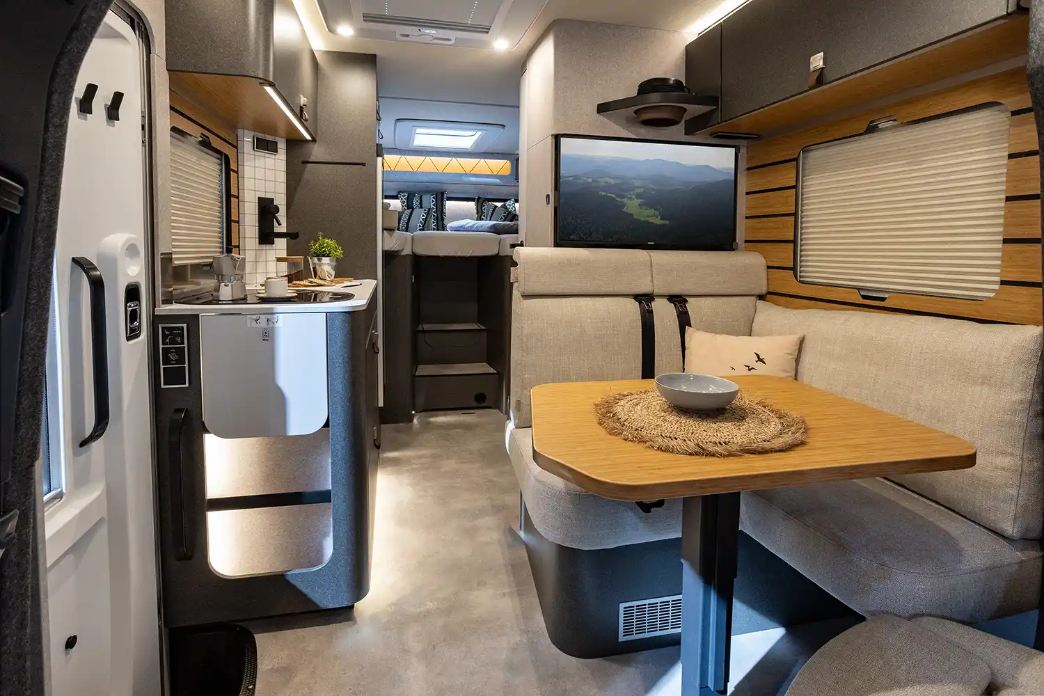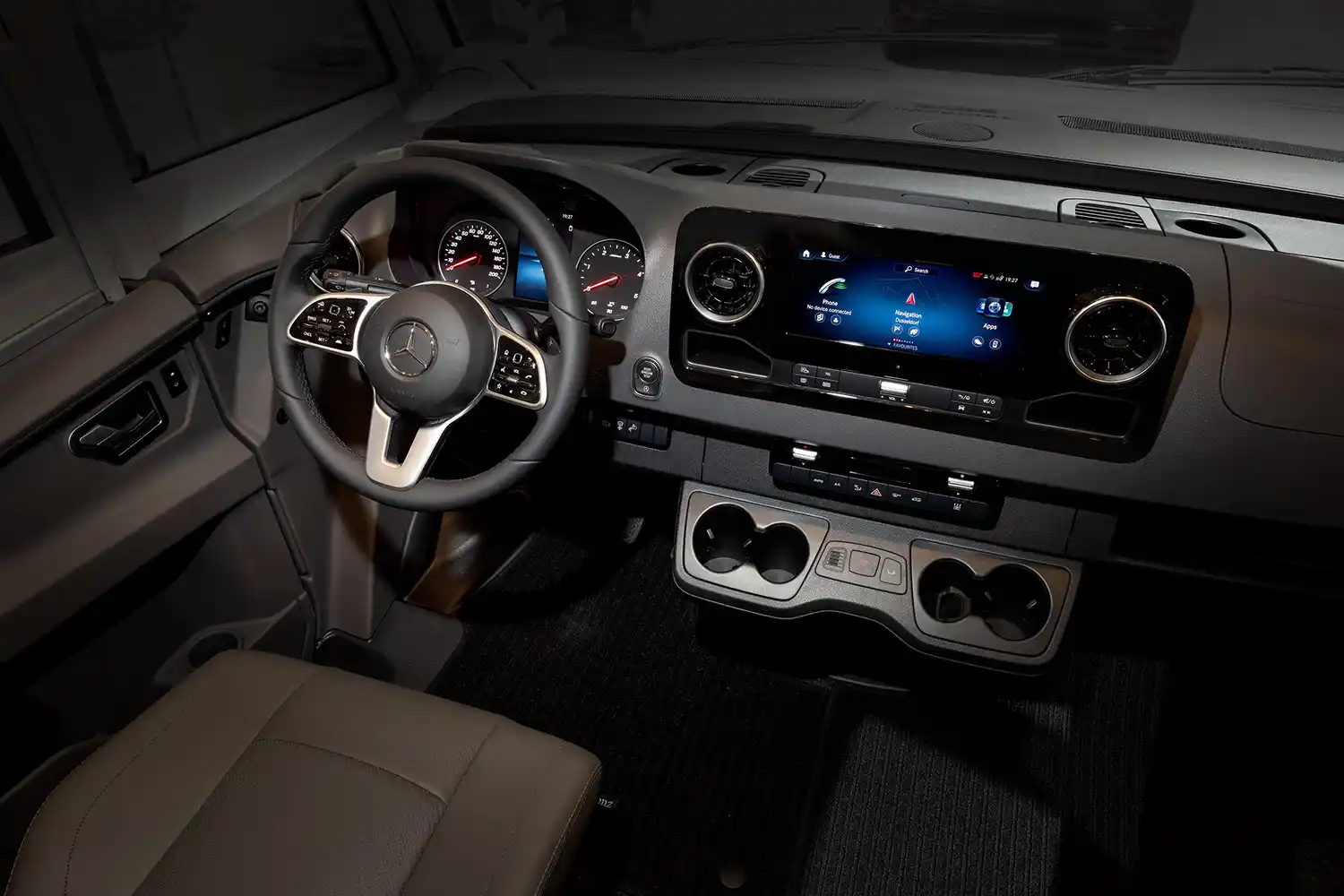 Some of the models come with Blind Spot Assist, which is now available for the first time for all Sprinter-based RV types. This can help to better monitor the blind spot to the side of the vehicle – a real advantage, especially for RVs with a certain length. The Wochner Summiteer 6.0 also features Mercedes-Benz Advanced Control, which, in addition to being offered in the V-Class Marco Polo, is increasingly establishing itself in RV conversions based on the Sprinter. A clear sign that digitalisation and safety are among the core values of the brand with the star and will be further expanded.