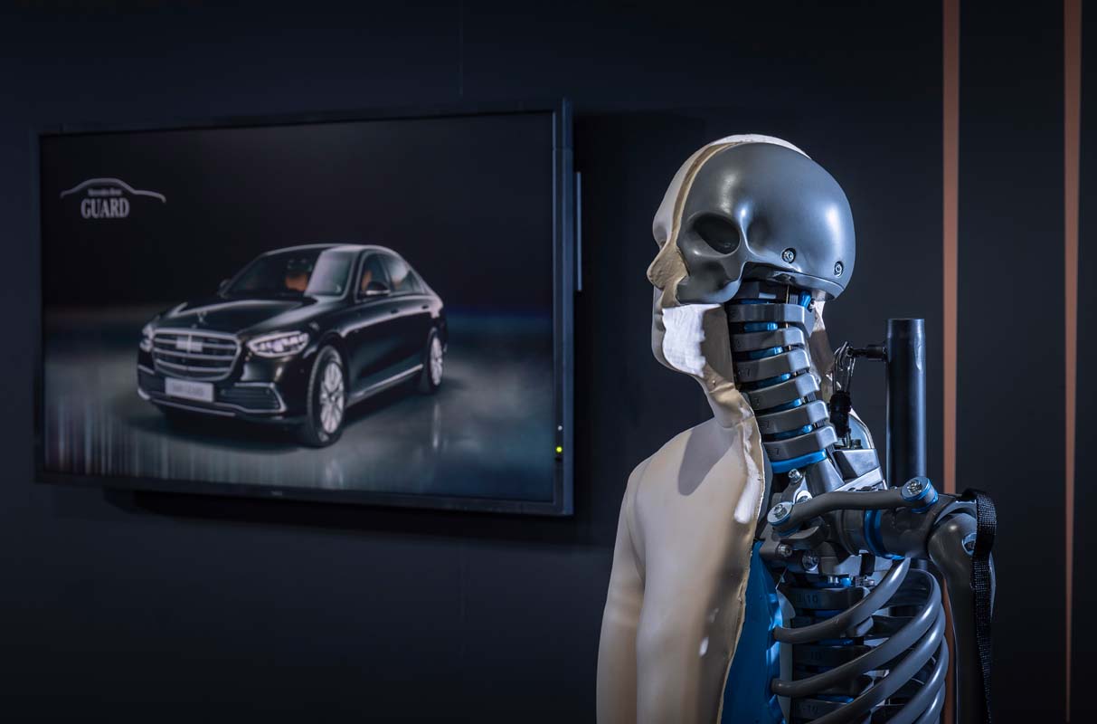 “For what really counts”: heads of state and business leaders can take this S-Class slogan literally when they entrust their lives to the new special protection version of the luxury model. For, with protection class VPAM VR10, the new S 680 GUARD 4MATIC (combined fuel consumption (WLTP): 19.5 l/100 km; combined CO2 emissions (WLTP): 442 g/km)[1] meets the highest ballistic test level for civilian vehicles and, moreover, is particularly resistant to explosive charges. The certification by Beschussamt Ulm (ballistic testing authority) was carried out for the first time using so-called biofidelic dummies. With bone and soft tissue-like constructions, these test dummies imitate the human body particularly realistically. The S 680 GUARD 4MATIC is the first GUARD saloon from Mercedes-Benz with all-wheel drive and is powered by the familiar V12 (M279) with 450 kW/612 hp. The basic price is € 457,100 plus value added tax. The S 680 GUARD 4MATIC will celebrate its world premiere at the IAA in Munich.