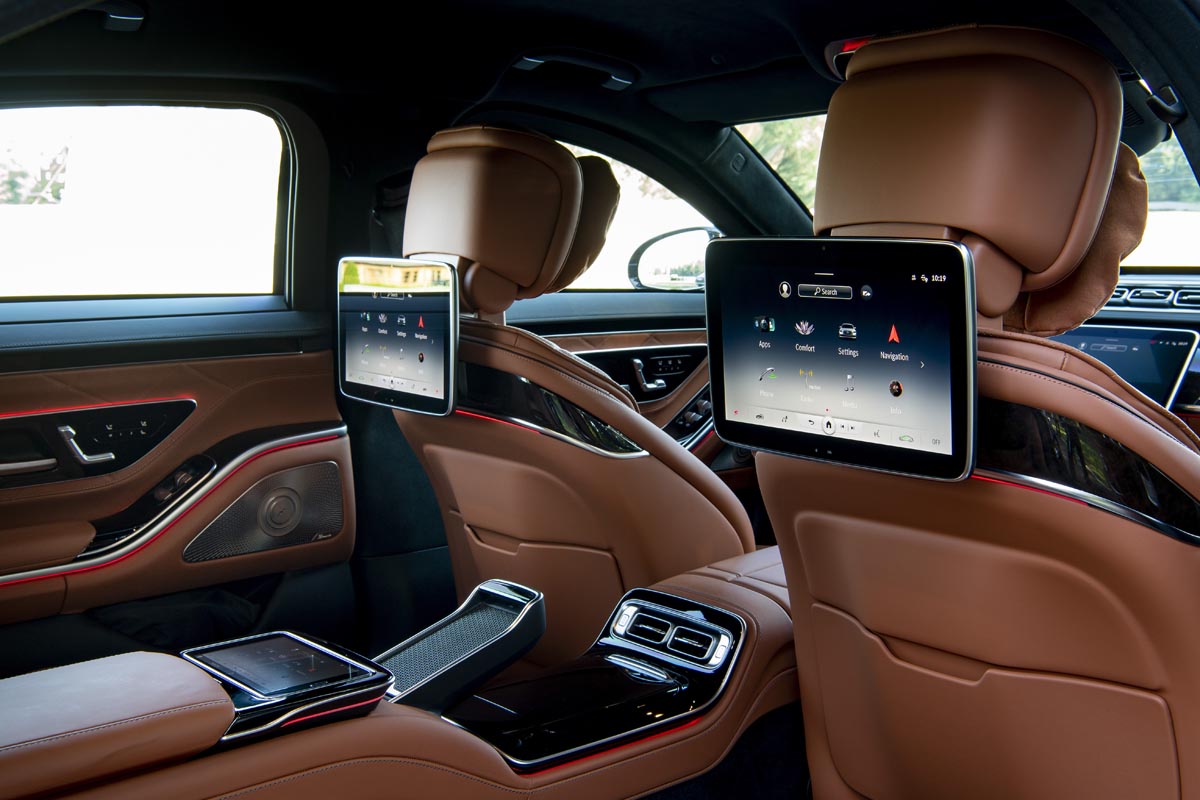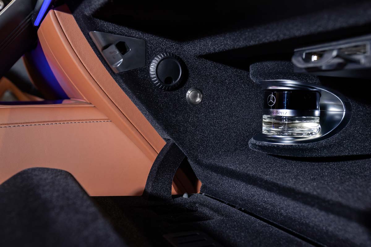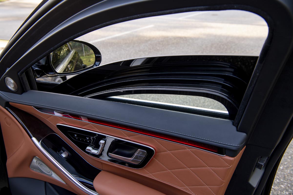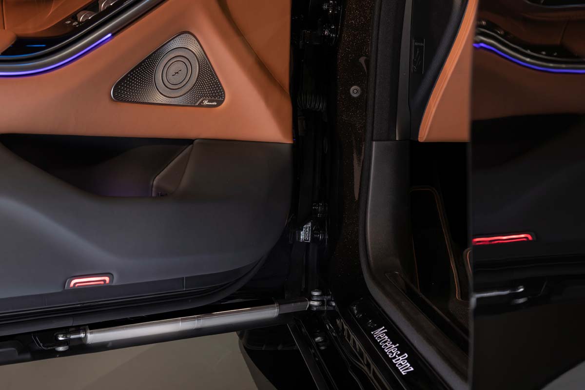 The highest level of protection combined with the best possible comfort for passengers and staff, that is the GUARD philosophy. This can be illustrated with two examples. The S 680 GUARD 4MATIC, for example, features newly developed door actuators. Although the doors are very heavy due to their armouring, this electro-mechanical system means that only low operating forces are required when opening and closing. This applies not only on level ground, but also when the vehicle is on a slope. The stepless door arrest also proves its worth in this situation. The door’s sensor technology detects when and how it is to be moved or stopped. Algorithms from human-supporting robotics (cobots) are used. The system facilitates the work of the bodyguards in particular, and at the same time they can keep one hand free.