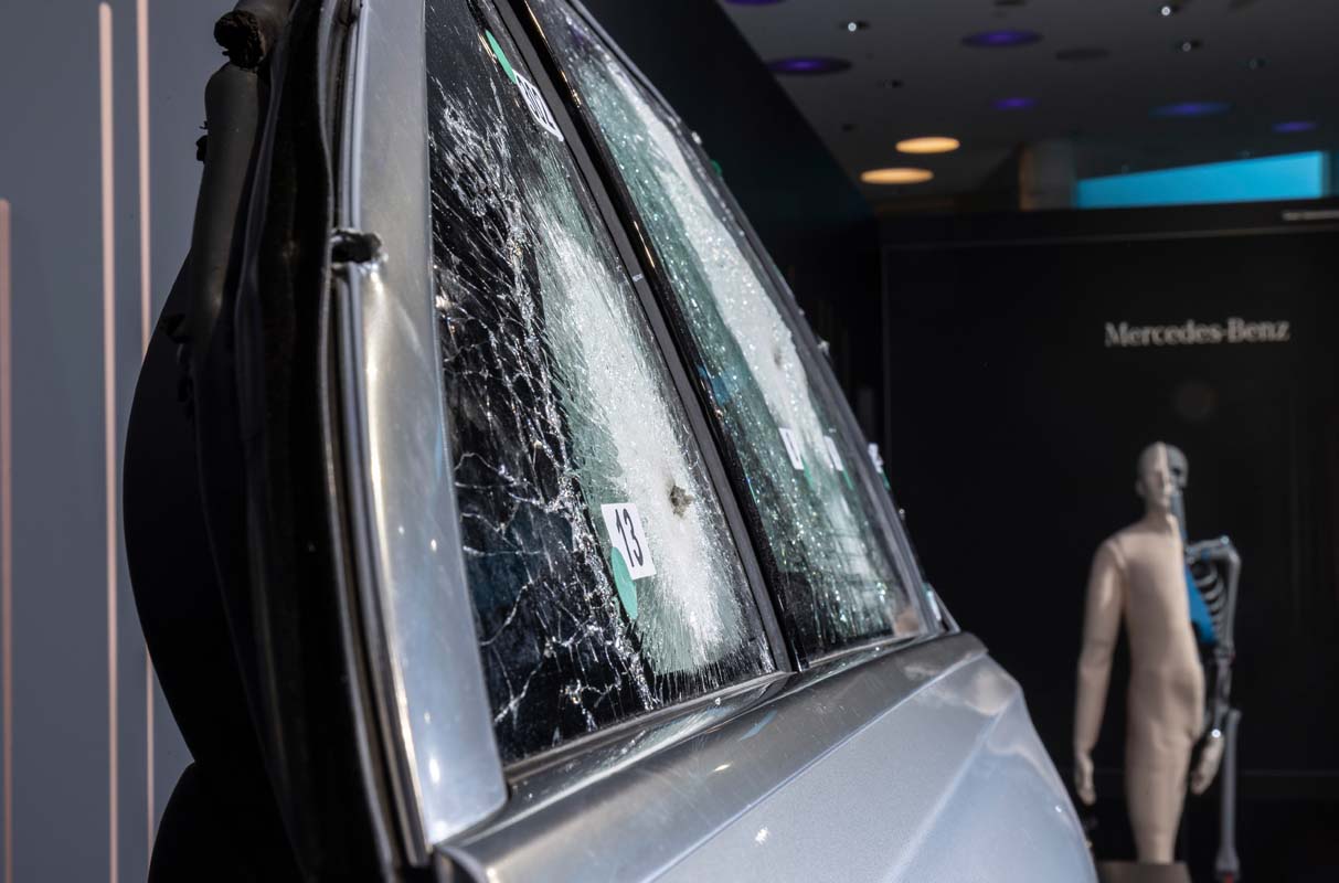 The testing was carried out by the Beschussamt Ulm, the only testing and certification body for weapons, ammunition and safety technology in the German state of Baden-Württemberg and one of the most state-of-the-art institutes of its kind. The new S-Class GUARD meets the requirements of the highest civilian protection class VR10 according to the standard VPAM BRV version three (Bullet Resistant Vehicles). In this test the body and windows must withstand fire from an assault rifle using armour-piercing ammunition. The S 680 GUARD 4MATIC also meets the requirements of Germany’s Federal Criminal Police Office (BKA).