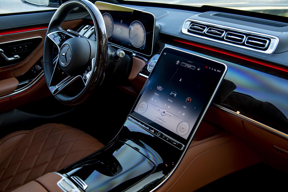 The V12 biturbo power unit has been extensively revised for its use in the new S-Class generation. The exhaust gas turbochargers, exhaust manifold and air ducting were all adapted. Also new is a closed-loop petrol-engine particulate filter. The V12 has an output of 450 kW/612 hp and a displacement of 5980 cc. The maximum torque is 830 Nm from 2000 rpm. The most important features of the engine include an all-aluminium crankcase, a one-piece chain drive, a forged crankshaft made of high-quality quenched and tempered steel, forged pistons and a multi-spark ignition system with twelve double ignition coils.