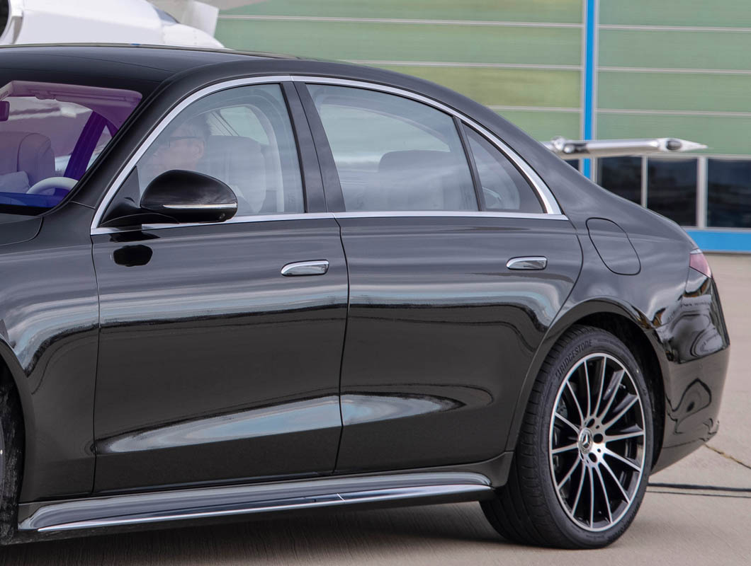 Mercedes-Benz has bundled its range of vehicle safety and protection services under the name URBAN GUARD. In addition to the familiar “URBAN GUARD vehicle protection” packages, the option of “URBAN GUARD break-in-resistant laminated safety glass with thermal and noise insulation” is a new addition to the URBAN GUARD category. This special equipment feature can protect against vandalism and theft with additional films between the panes of laminated safety glass.