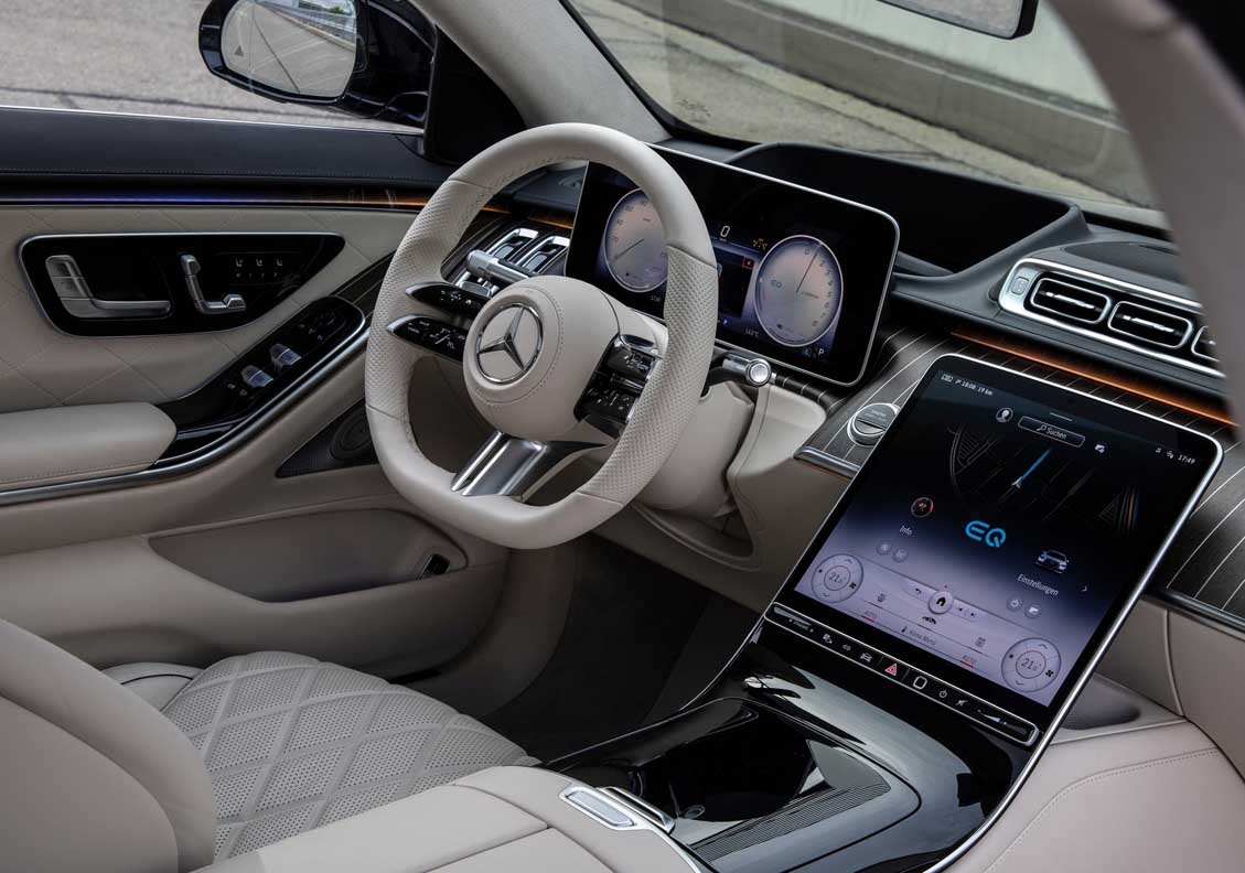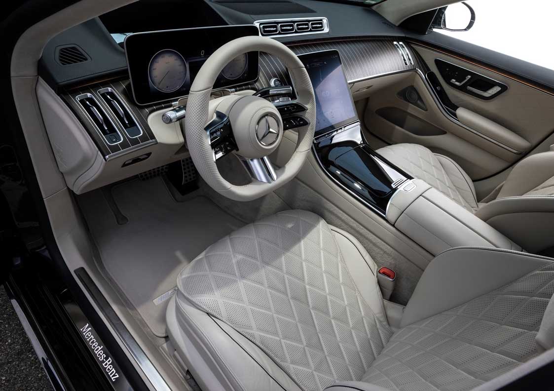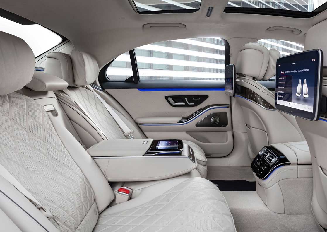 The Mercedes-Benz S-Class has always been a place for comfortable travel and relaxed working. With the new generation, the interior has fully evolved into a “third place”, a refuge between the home and workplace. Nearly all comfort-related dimensions of the S-Class have been improved in the front as well as on the rear seats. The sense of space is accordingly generous.