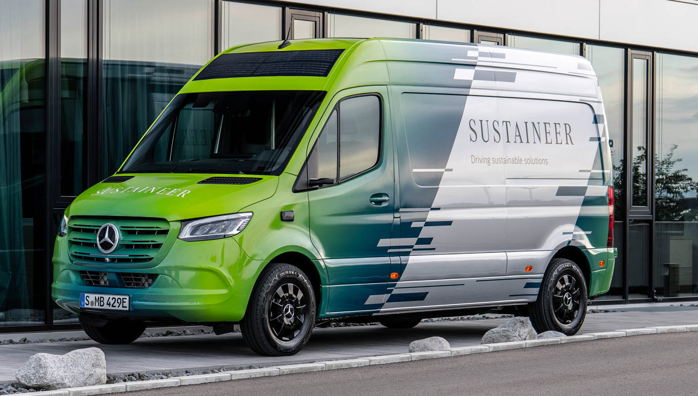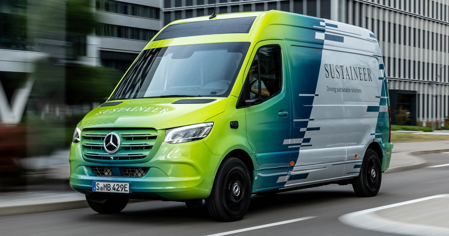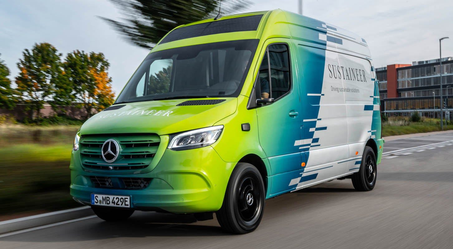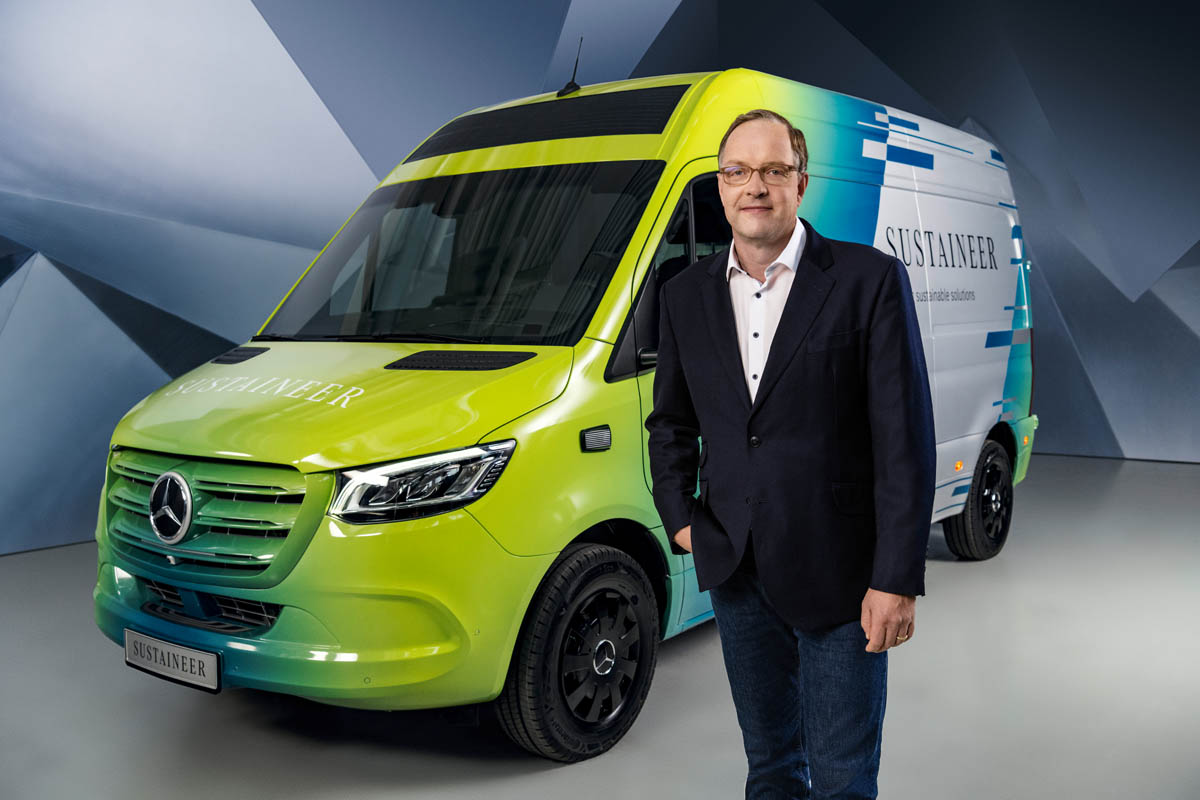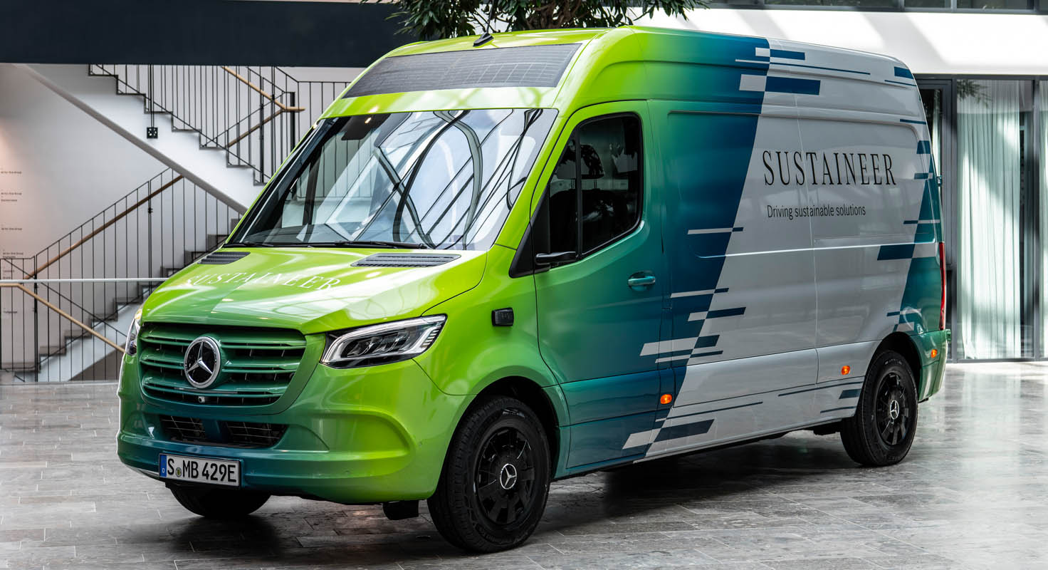 Last-mile vans that are climate neutral, produce their own green electricity and can actively improve the air quality in cities: with its technology demonstrator, the Sustaineer (SustainABILITY PIONeer), Mercedes‑Benz Vans is providing us with a tangible impression of just how sustainability in urban delivery operations may look in the future. The fully electric van based on the Mercedes-Benz eSprinter combines a variety of innovative solutions designed to improve the quality of life in cities, to conserve resources and protect the climate, and to better the health and safety of the driver and other road users. These include a fine particle filter on the front module and underbody, a solar panel on the roof, component parts made of recycled materials as well as a heating system which is close to the body. The innovations and technical solutions that the SUSTAINEER is fitted with have been designed with the possibility of series production in mind, so that their use in future Mercedes-Benz Vans vehicle generations is feasible.