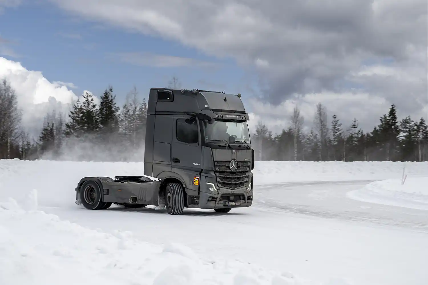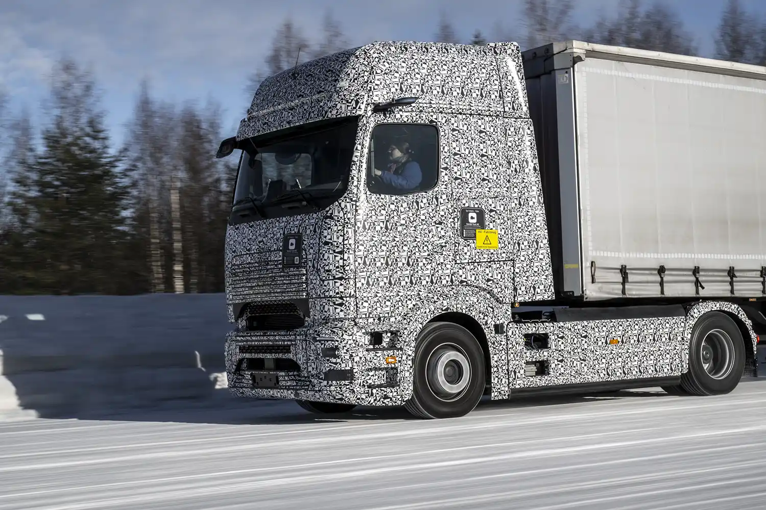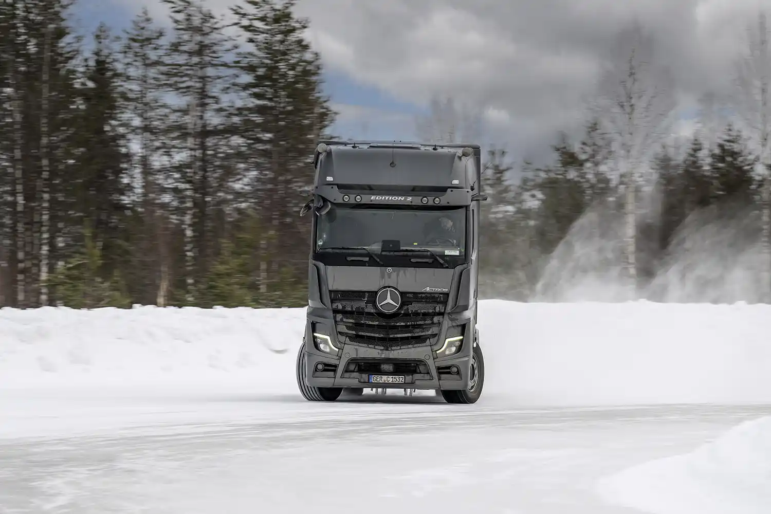 The winter test also included numerous tests on driving and braking properties on surfaces with different levels of grip as well as the impact of slush, for example, on the effectiveness of the sensors of driver assistance systems. Also tested was how the Trailer Stability Assistant can reduce the risk of tractor-trailers skidding during cornering or evasive maneuvers on winter roads and how the MirrorCam handles different contrast conditions on ice and snow.