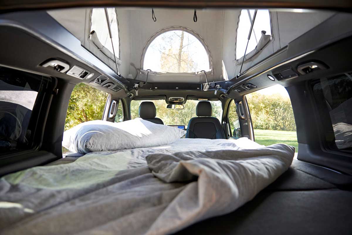 With the optionally available three-person bench seat/berth, the EQV also already meets basic camping requirements ex-factory.