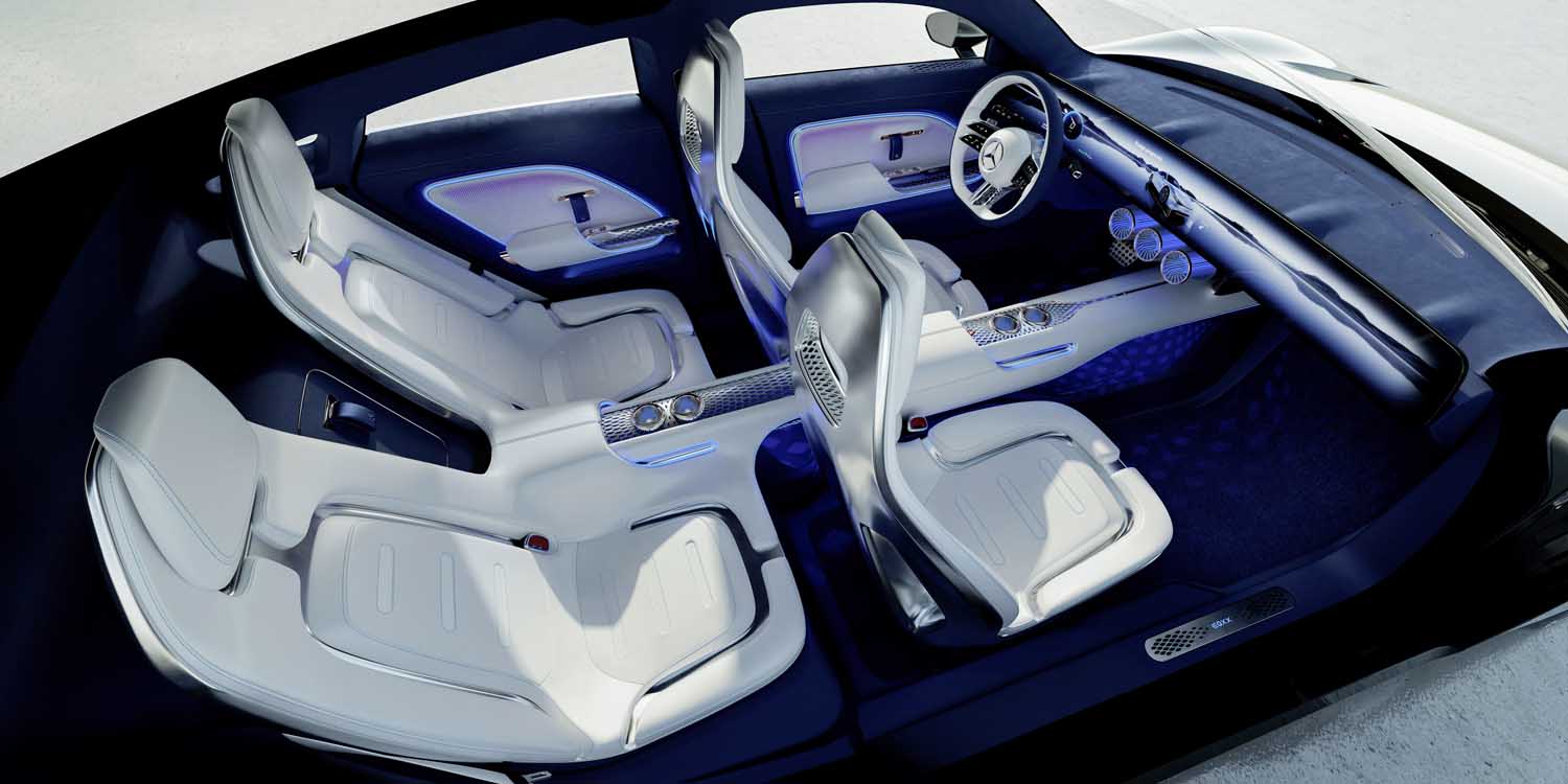 As well as reducing energy consumption, the layout of sound system in the Vision EQXX also facilitates multiple different sound zones. The efficiency assistant takes advantage of the sound system to communicate its recommendations to the driver via a series of intuitive audio “cues”. These were inspired by the cues used by Formula E motor racing to help the drivers perform more efficiently.