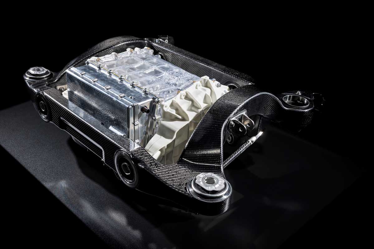 Several more aspects of the battery design add to its exceptional efficiency. For instance, its lightweight lid was engineered jointly by Mercedes-AMG HPP and their chassis partners at Mercedes-Grand Prix. The lid is made from a unique, sustainable composite material derived from sugar-cane waste, reinforced with carbon fiber, as used in Formula 1. The battery also features active cell balancing, which means drawing the energy evenly from the cells while the car is driving – in effect, giving it greater stamina. Overall, the battery weighs around 1,091 lbs, including the OneBox.