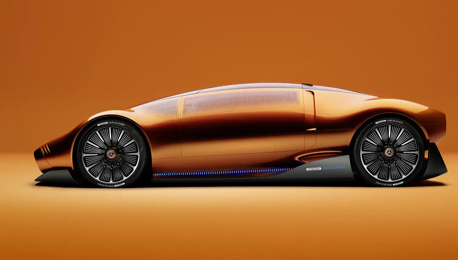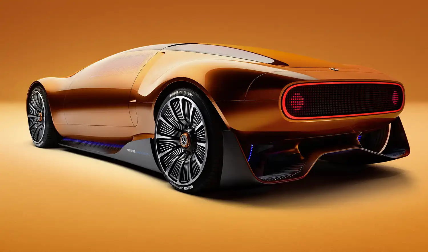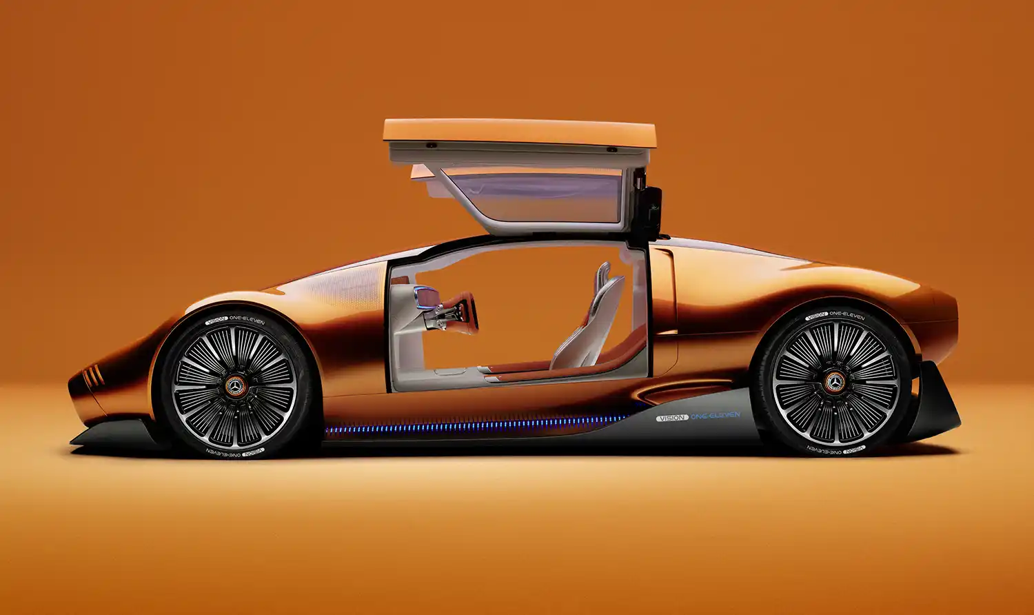 Mercedes-Benz presented a new sports car study. The Vision One-Eleven combines a highly dynamic design language with innovative all-electric powertrain technology. The supercar silhouette is characterised by skilful execution of the signature Mercedes-Benz One-Bow design that is a marker of its 21st-century style. The development of this design underscores the positioning of the Mercedes-Benz brand, which stands for ICONIC LUXURY. Its technical highlights include the extremely powerful and highly efficient axial-flux motor developed by electric motor specialist YASA. The British company has been a 100-percent subsidiary of Mercedes-Benz AG since July 2021.