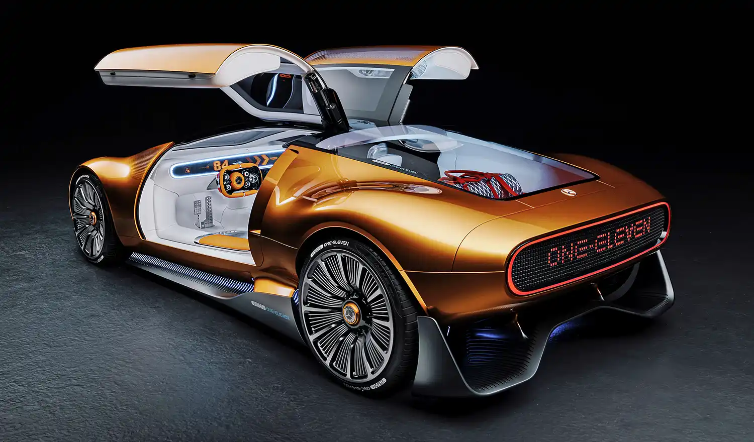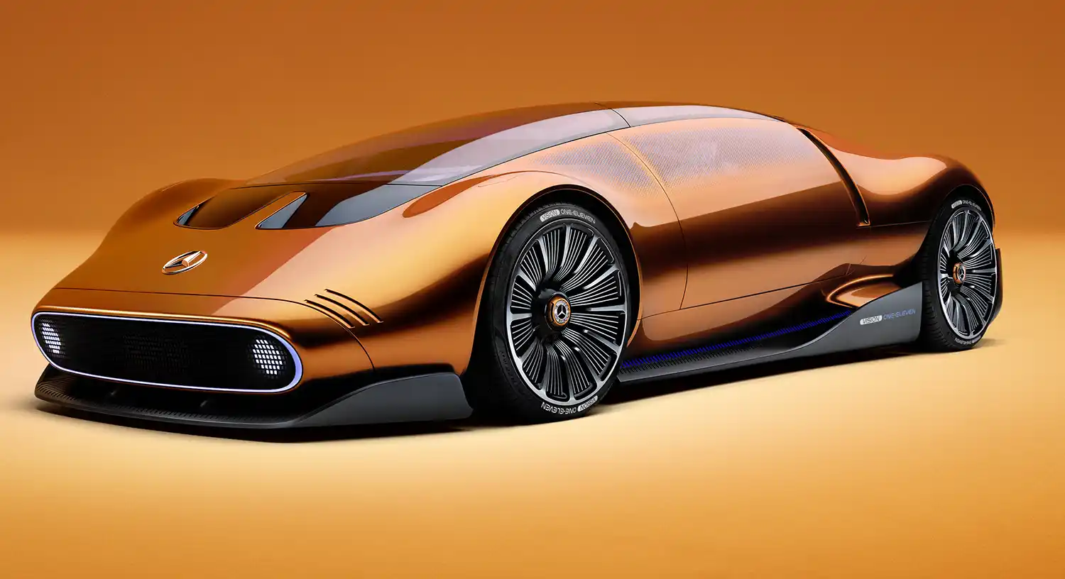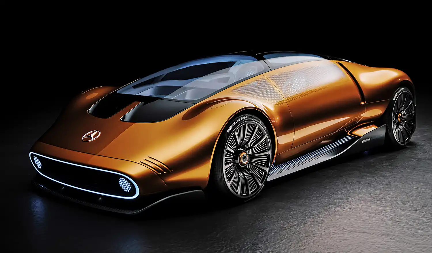 Mercedes-Benz presented a new sports car study. The Vision One-Eleven combines a highly dynamic design language with innovative all-electric powertrain technology. The supercar silhouette is characterised by skilful execution of the signature Mercedes-Benz One-Bow design that is a marker of its 21st-century style. The development of this design underscores the positioning of the Mercedes-Benz brand, which stands for ICONIC LUXURY. Its technical highlights include the extremely powerful and highly efficient axial-flux motor developed by electric motor specialist YASA. The British company has been a 100-percent subsidiary of Mercedes-Benz AG since July 2021.