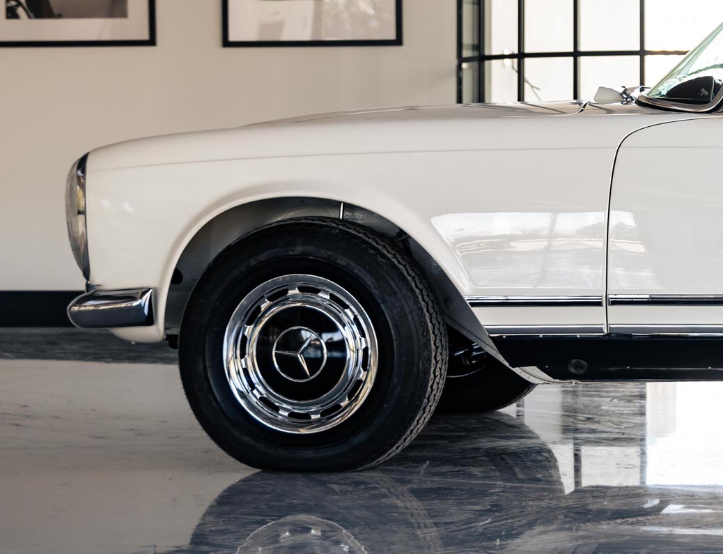 With paint shop, engine shop, trim shop, machine shop and coachworks on-site, Hilton & Moss carries out 95% of its restoration work entirely in-house, ensuring the quality of the work completed. Having specialised in the restoration and sales of Mercedes-Benz models for forty years, Hilton & Moss’ bodywork services are fully manufacturer-approved, while the business has custom-prepared examples of the 190 SL for clients including model David Gandy and ex-Formula 1 racing driver Max Chilton.