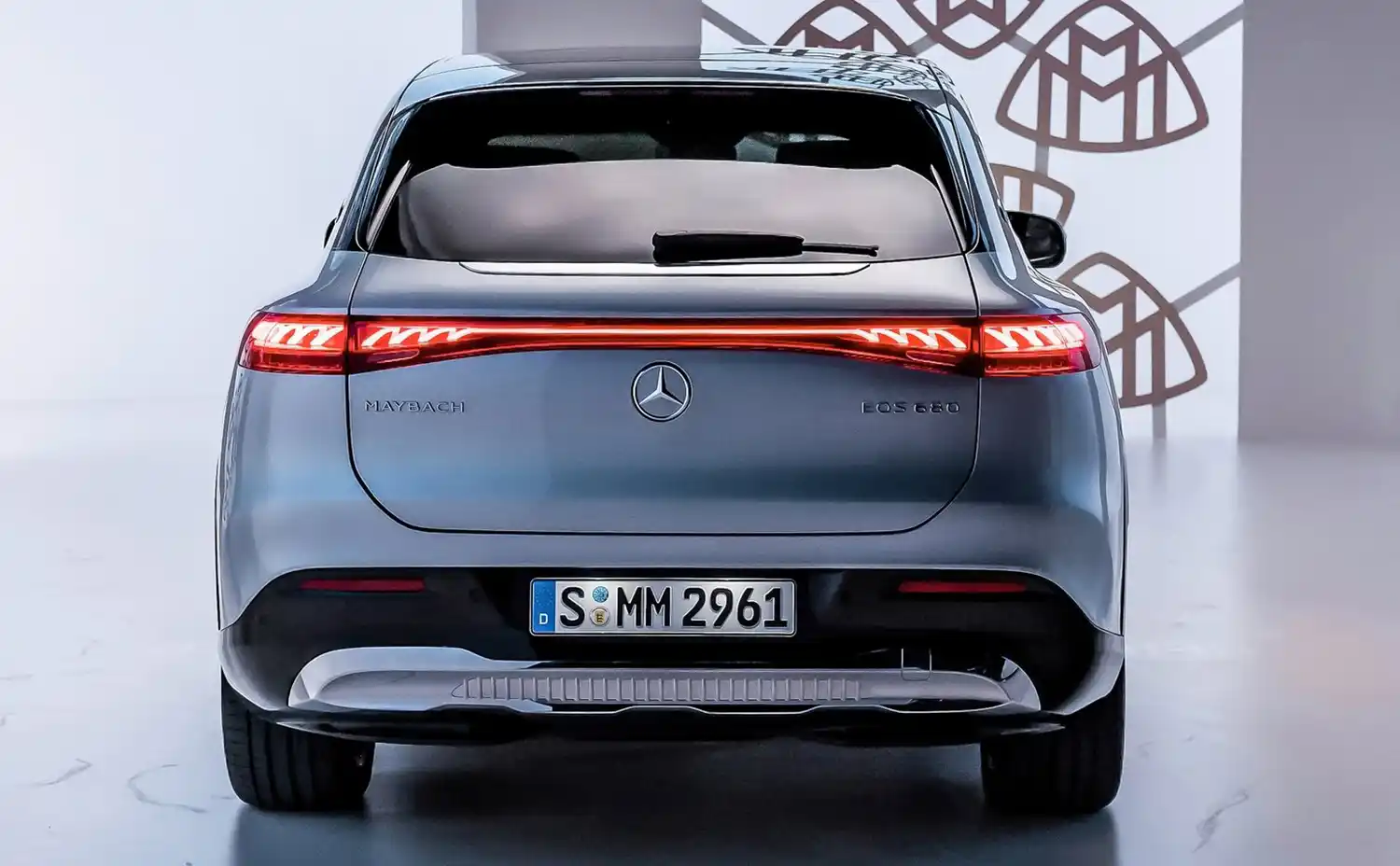 At the rear, the rear lights underline the exclusive character as a continuous light strip with a two-part helix. The lights are animated across the entire width. There are also chrome trim elements on the tailgate, on the rear apron and the spoiler lip, as well as the MAYBACH lettering.