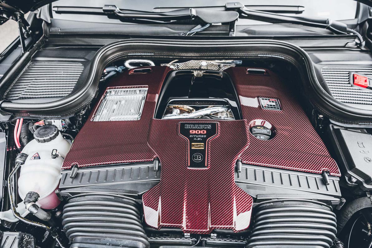 Underneath the BRABUS engine cover made of red carbon is a host of further modifications in order to achieve the desired performance enhancement without any compromises in terms of durability and daily practicality. Two high-pressure pumps with increased flow rate and an additional booster pump optimize the fuel supply to the engine. In addition, the intake system is extensively modified to improve the supply of air.