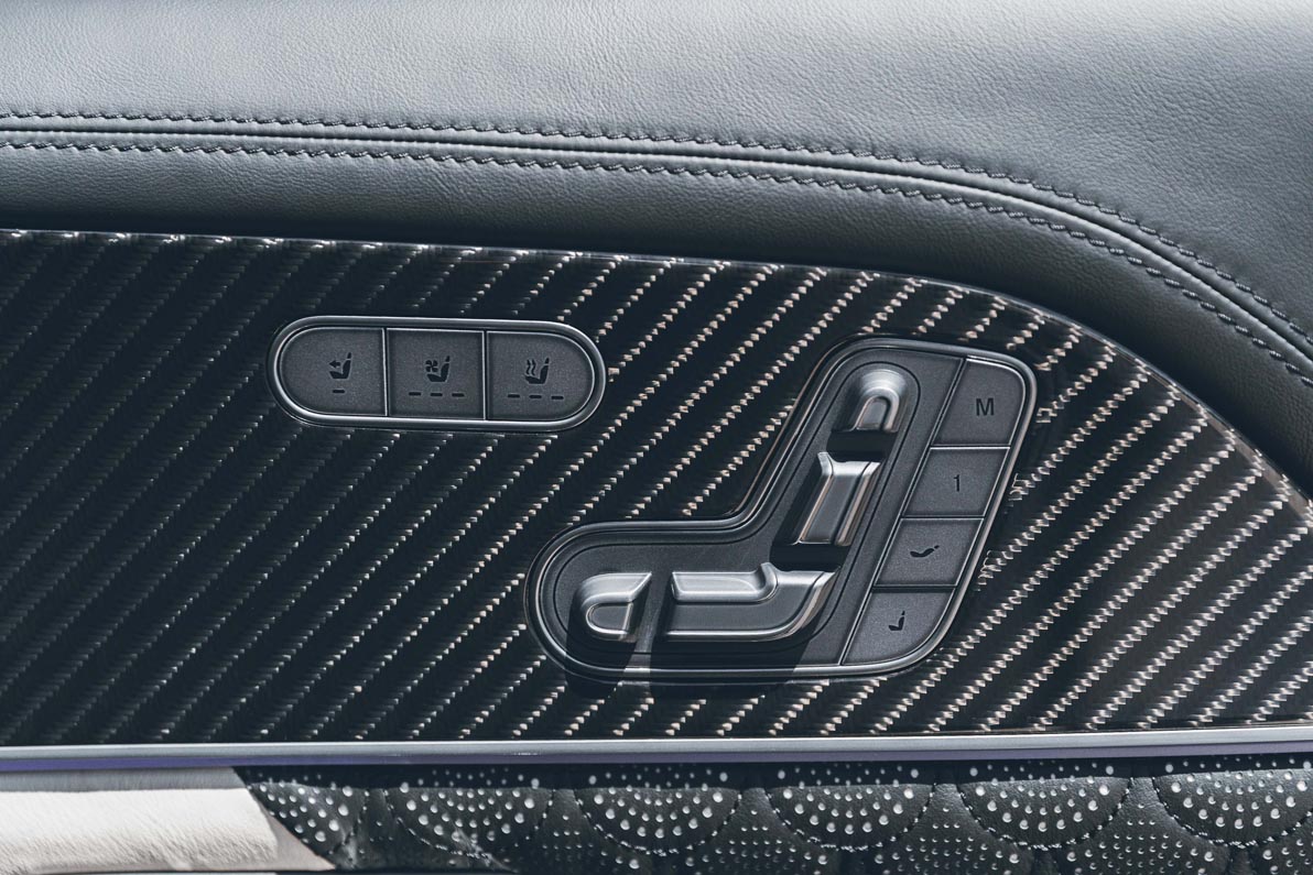 The sporty-elegant BRABUS-style appearance is rounded off by huge 24-inch wheels. The Monoblock M “PLATINUM EDITION” forged rims perfectly fill out the space under the fenders enhanced with BRABUS exposed-carbon flares. The attractive disc wheels with sophisticated ventilation openings for the brakes are created in a complex production process that achieves extremely high strength. BRABUS technology partner Continental supplies the perfectly matching rubber for them, SportContact 6 high-performance tires. The size 10Jx24 rims on the front axle are mounted with tires of size 295/35 R 24. The rear axle runs on 12Jx24 wheels carrying tires of size 335/30 R 24.