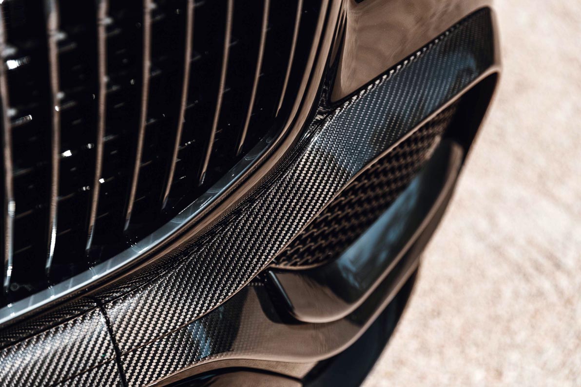 The sporty BRABUS exposed-carbon package for the bodywork is the perfect fit for this level of vehicle performance. The radiator grille and all other trim components that are chromed on the production car feature ‘Shadow Grey’ glazing to match the black paint finish. The forged BRABUS Monoblock M “PLATINUM EDITION” 24-inch wheels sport the same color.