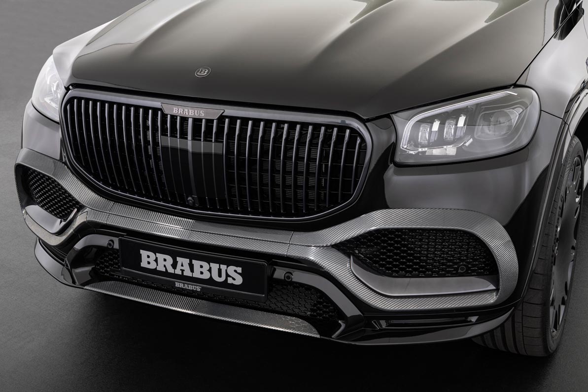 The combination of BRABUS front spoiler and carbon detachable parts is complemented visually to great effect with another measure. The radiator grille and all trim parts that are normally chromed on the production bodywork of the GLS-Class sport ‘Shadow Grey’ glazing, contributing to the SUV’s more dynamic face.