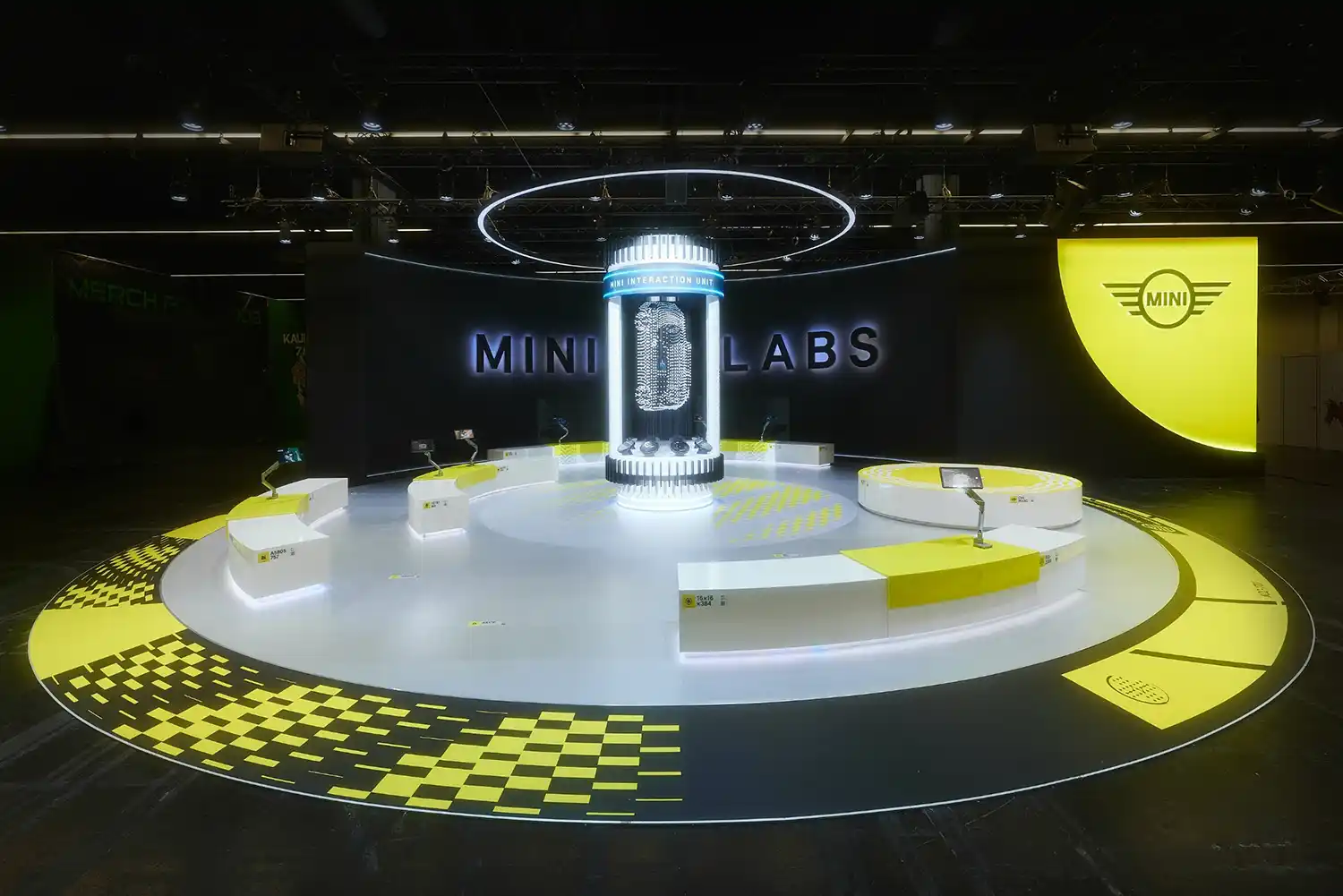 Shortly before the official launch of the new MINI family at the IAA MOBILITY 2023, MINI is offering an exclusive look at the central control unit – the MINI Interaction Unit. The round OLED display was developed together with Samsung Display Corporation and represents a first in the automotive industry. For the staging at gamescom, MINI chooses one of the most iconic settings in pop culture as a reference: the high-tech lab. At the center of the MINI Lab is a gigantic incubator tank reminiscent of great science fiction, gaming and anime classics.