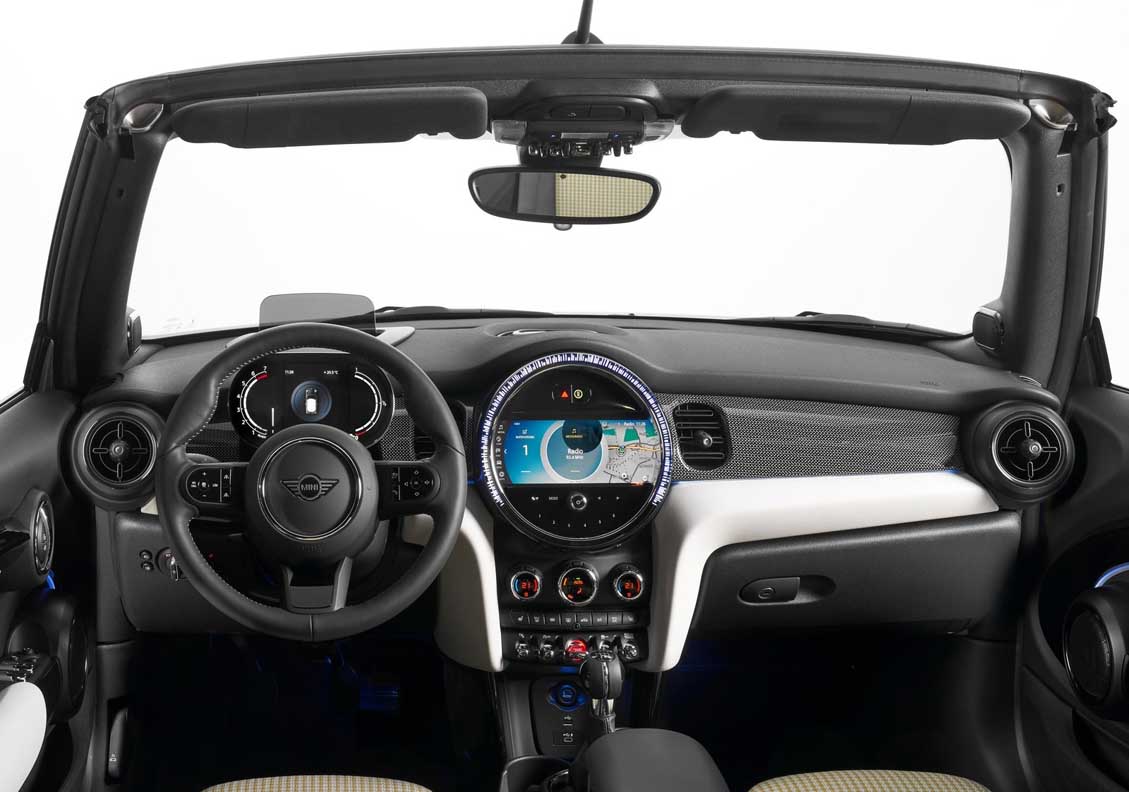 The redesigned interior of the MINI 3-Door Hatch, MINI Electric, MINI 5-Door Hatch and MINI Convertible is sophisticated and modern. An 8.8-inch colour touchscreen display and Piano Black high-gloss surface are now standard and the audio control unit and function buttons for hazard warning lights and driver assistance systems are integrated more harmoniously into the circular control unit.