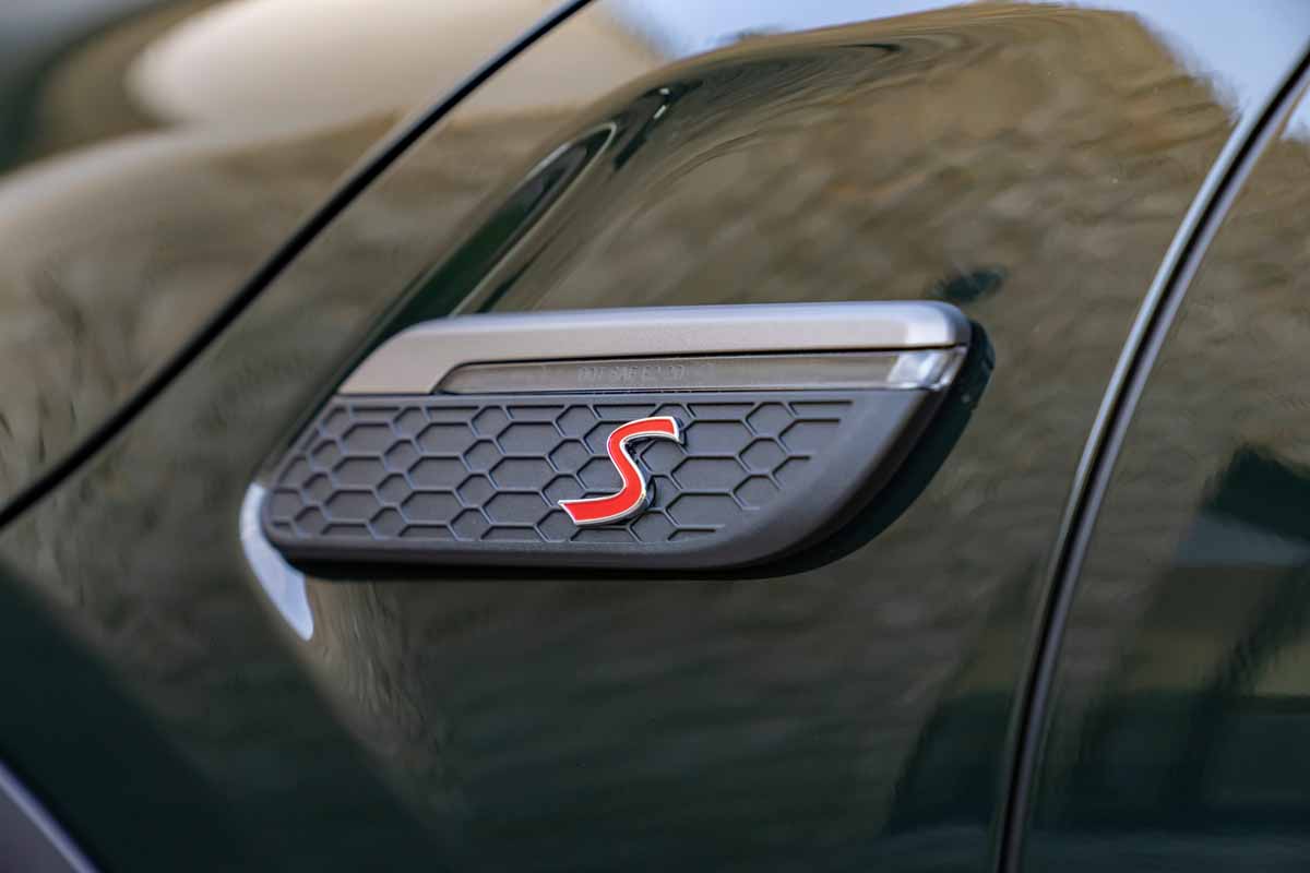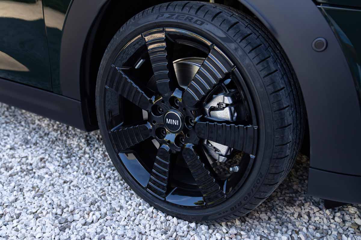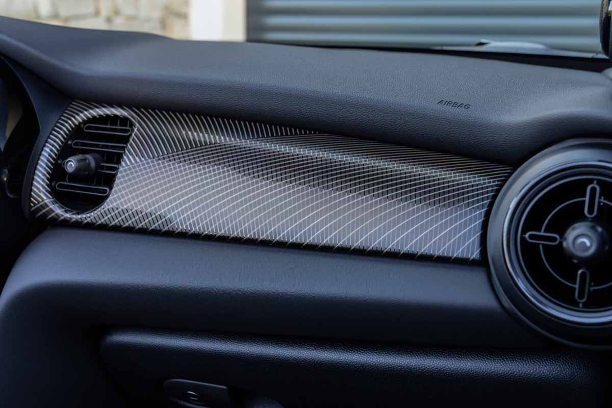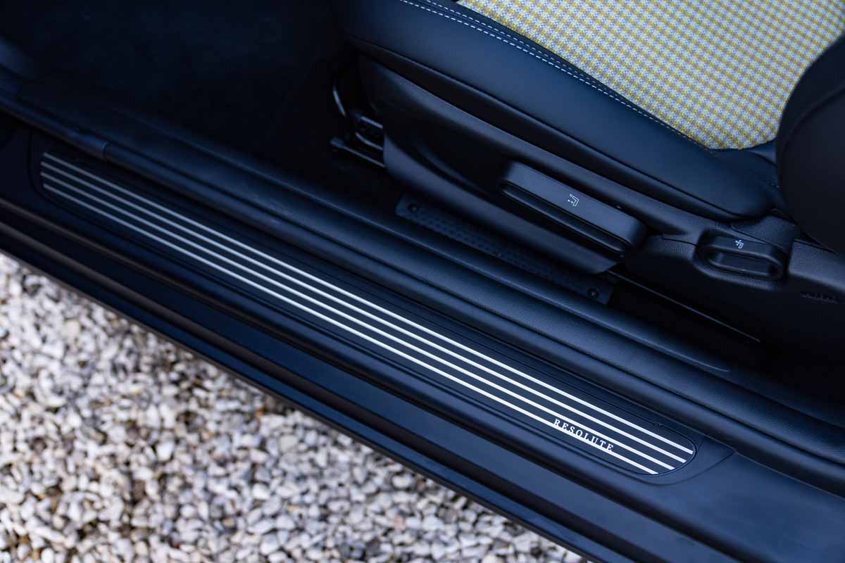 Door sill finishers bearing the inscription “RESOLUTE” mark the entrance to the edition model interior, where the occupants settle into sports seats in exclusive Black Pearl / Light Chequered fabric/leatherette. This colour scheme harmonises perfectly with the Rebel Green body finish as well as with the black and gold exterior design features. The MINI Yours Leather Lounge variant in Carbon Black is also available as an option.