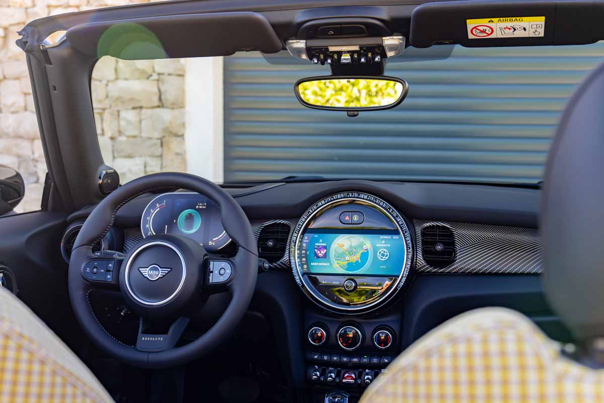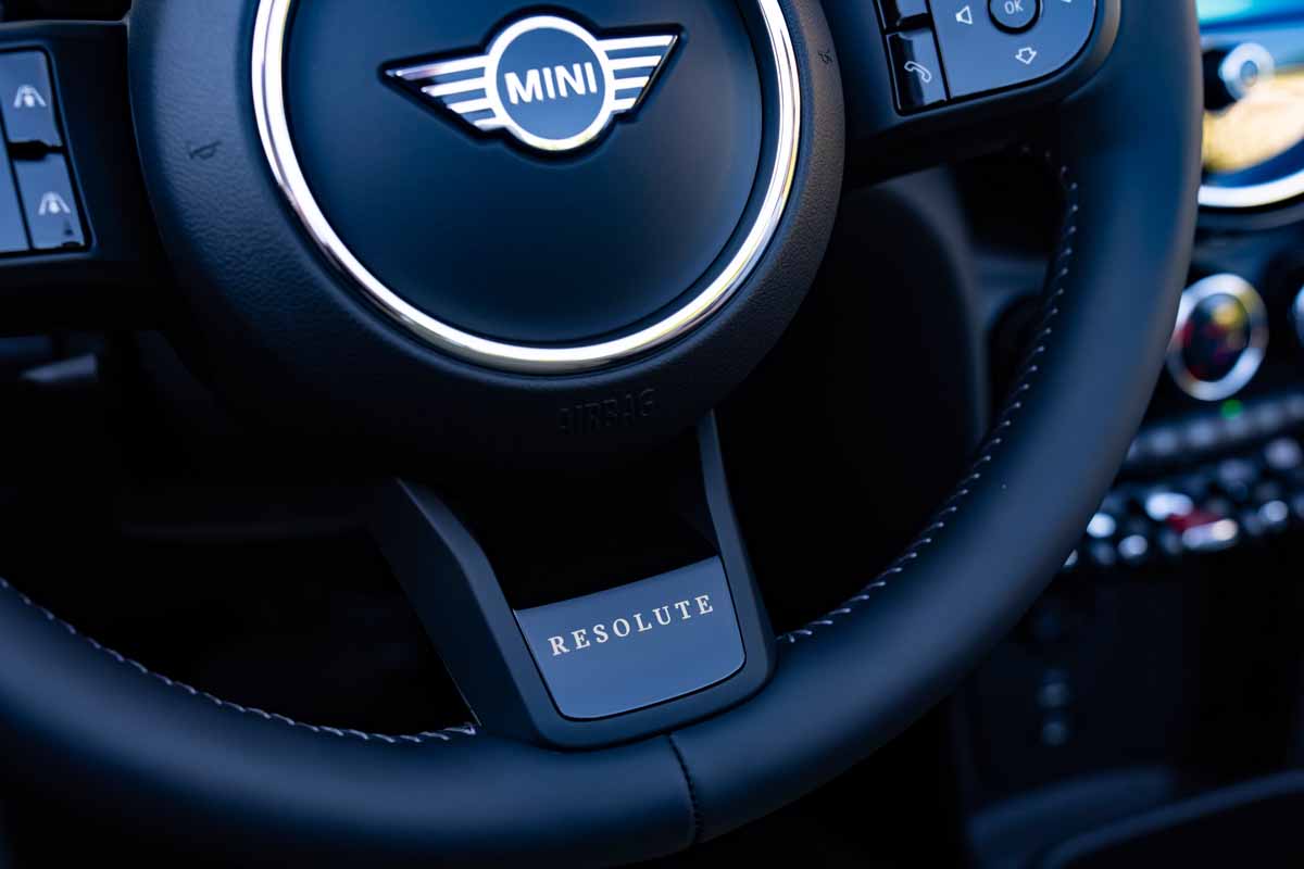 A further highlight of the interior of the MINI Cooper S Convertible in the Resolute Edition is the sports leather steering wheel in Nappa leather. It bears a discreet “RESOLUTE” emblem in the lower area of the steering wheel spoke. The latest generation of the MINI operating system optimises the quick and intuitive control of vehicle functions, audio programme, communication, navigation and apps. In addition, the newly compiled equipment packages allow highly specific individual preferences in the areas of driver assistance and connectivity.