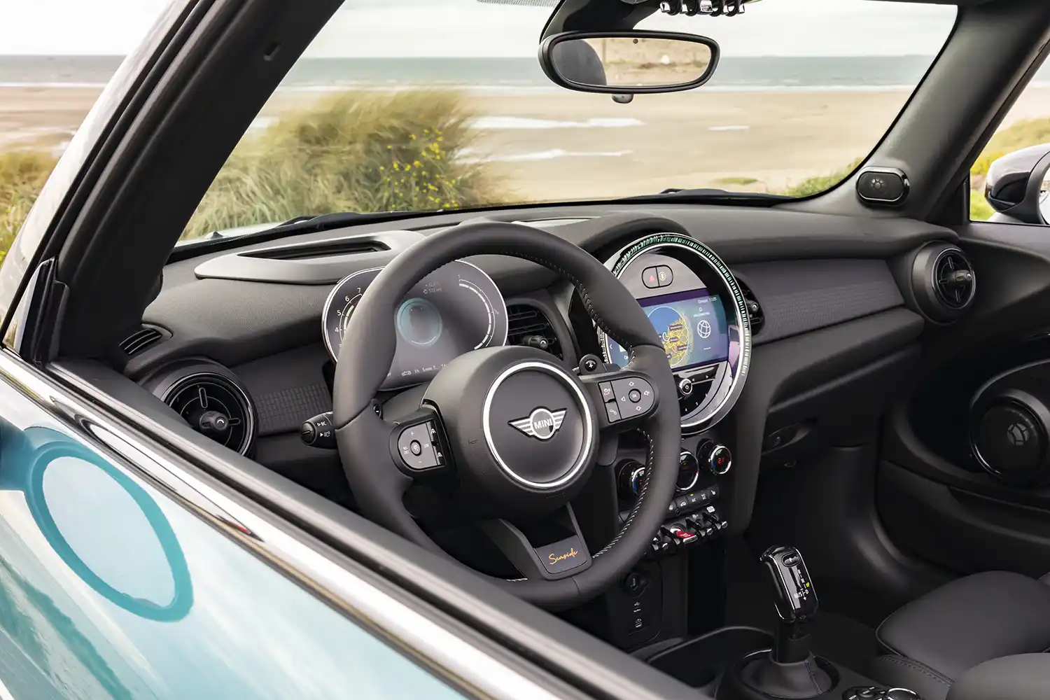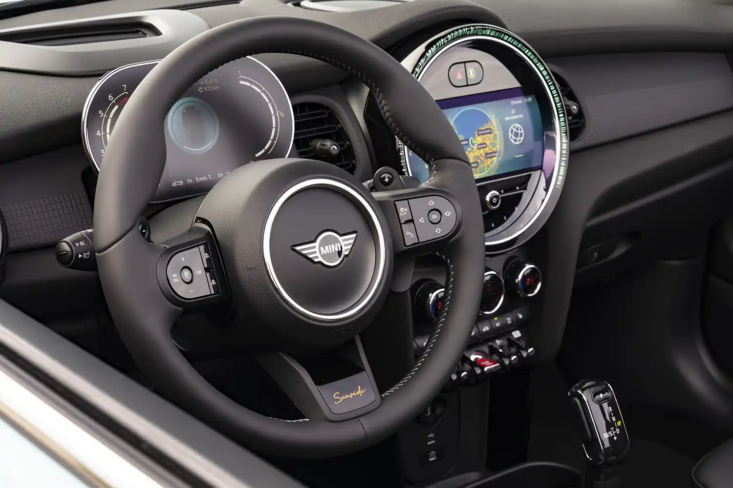 From February 2023, the limited Seaside Edition of the MINI Convertible will accentuate this stylish model’s hallmark features with an edition-specific design in the exterior and interior. Double decorative stripes in white run from the side doors to the rear of the vehicle, and the exclusive exterior design is rounded off with a unique graphic on the front apron, where a stylised 30 once again refers to the model’s anniversary.
