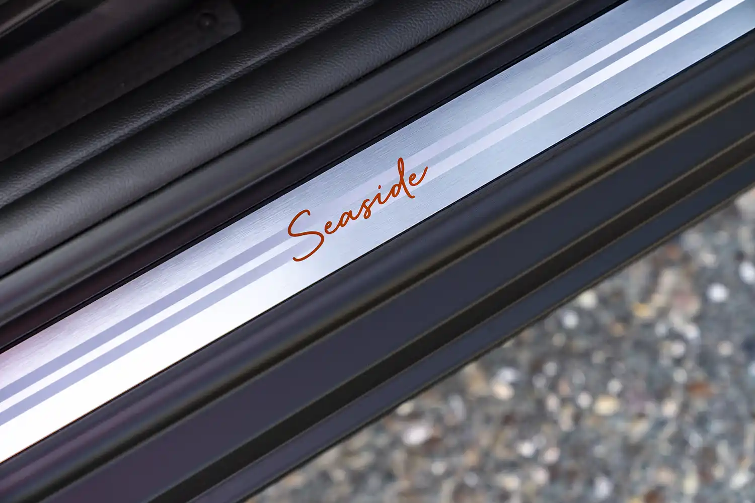 The side scuttles with the edition’s discreet “Seaside” lettering pick up on the 30th model anniversary with graphically designed numerals in light and dark blue. The round birthday is also celebrated with exclusive “Seaside” lettering in sporty orange on the rear. Meanwhile the 18-inch alloy wheels in Pulse Spoke design are reminiscent of pulsating waves in the water. By contrast, the specific wheel caps stand still: here, the number of the anniversary appears once more. A weight behind them ensures a perfect appearance at all times.