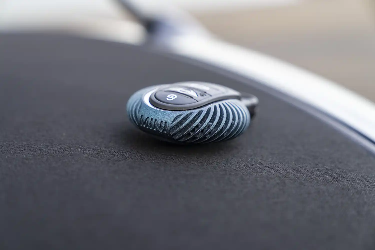 The decorative trim strips on the front dashboards also appear in edition-specific design: both the printed pattern and the lettering bring the round anniversary to mind once again. This pattern also appears on the floor mats in the form of a graphic badge. The lower spoke of the sports leather steering wheel features the eponymous “Seaside” lettering of the new MINI Edition. The vehicle key featuring the edition-specific graphic wave pattern in iridescent blue tones picks up on both the open atmosphere and the pure elegance of the sea, enabling the owner to take a piece of this exclusive edition home with them. The integrated “Seaside” lettering underlines the model’s unique flair – definitely ruling out any potential key mix-ups.