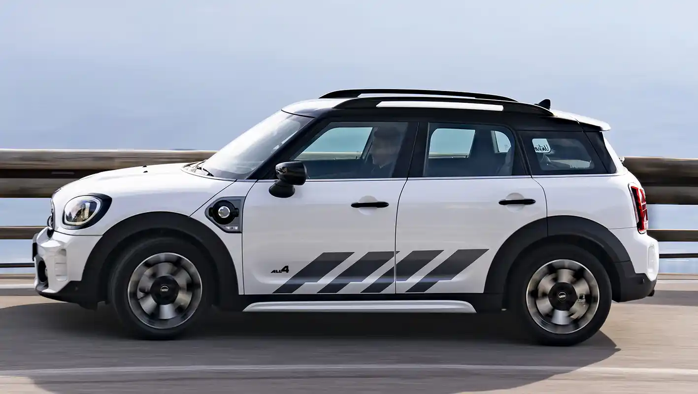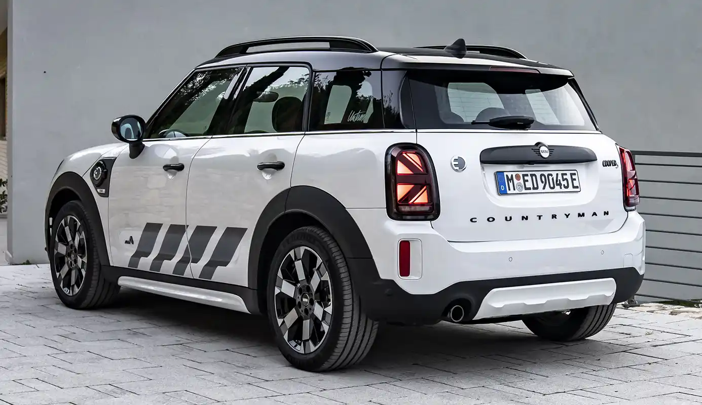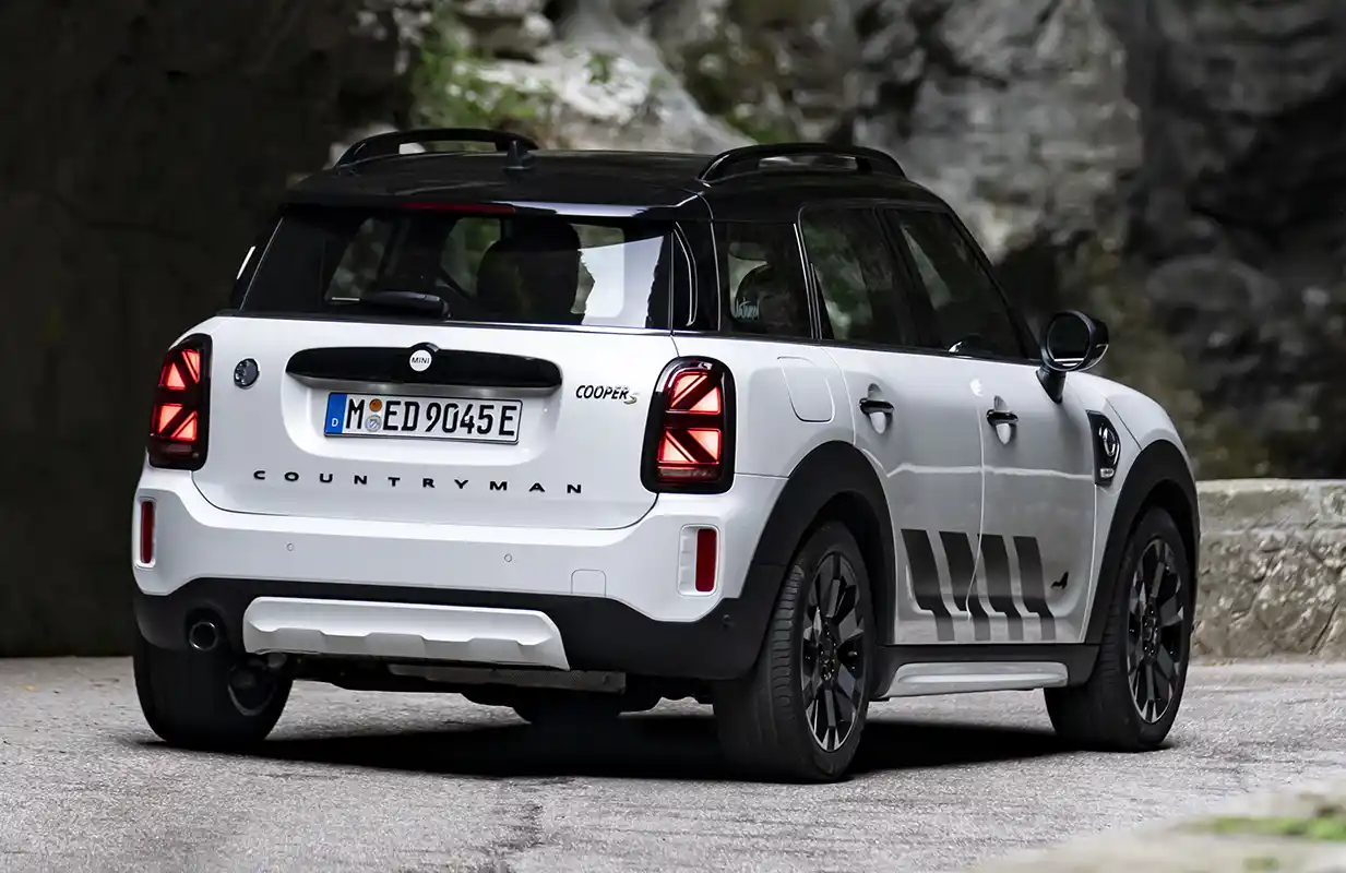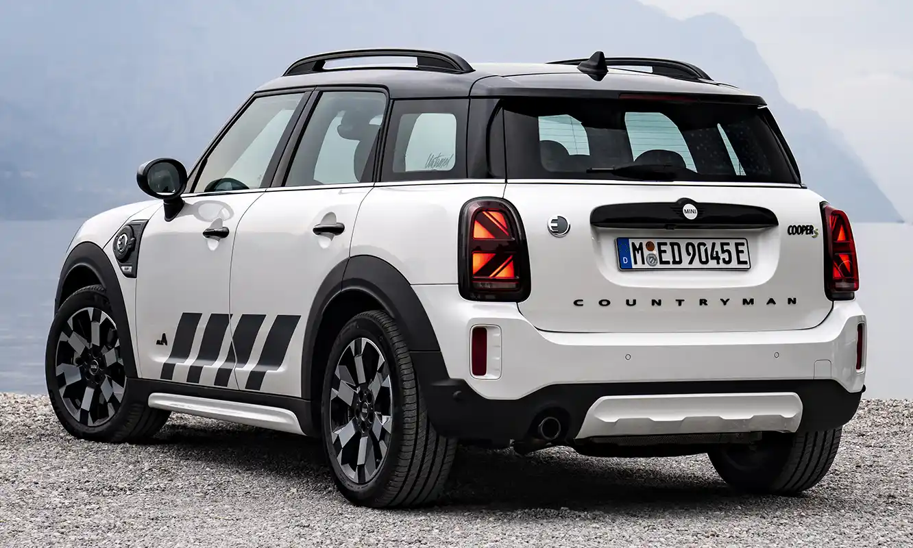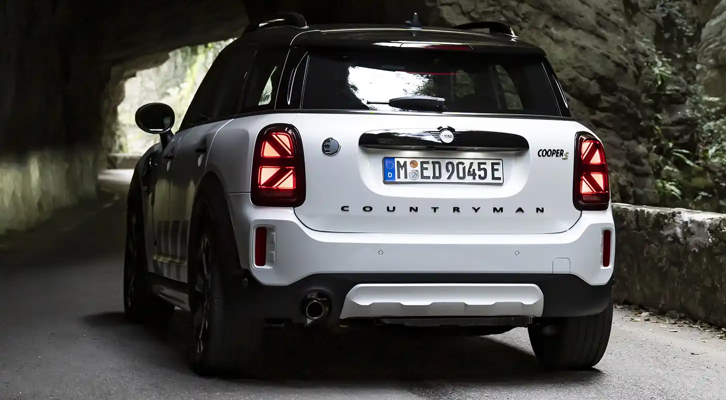Two drives with a total of 162 kW/220 hp system output deliver sporty driving fun on and off the road. The front wheels are driven by a three-cylinder engine with 92 kW/125 hp, and the rear wheels are powered by an electric motor generating 70 kW/95 hp. The MINI Cooper SE Countryman ALL4 (combined fuel consumption: 2.1 – 1.7 l/100 km according to WLTP, 2.1 – 1.9 l/100 km according to NEDC; combined power consumption: 15.5 – 14.8 kWh/100 km according to WLTP, 14.8 – 14.1 kWh/100 km according to NEDC, CO2 combined emissions: 47 – 39 g/km according to WLTP, 48 – 44 g/km according to NEDC) excels with maximum traction and driving stability even off paved roads. With an electric range of 51 kilometres, the MINI Cooper SE Countryman ALL4 can also be driven in sporty style in urban environments without producing any local emissions.