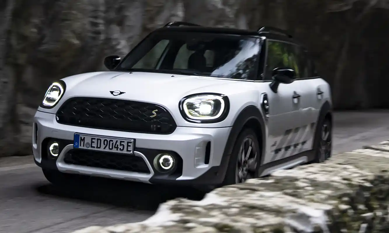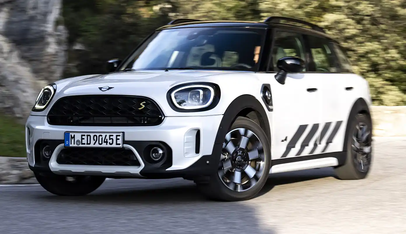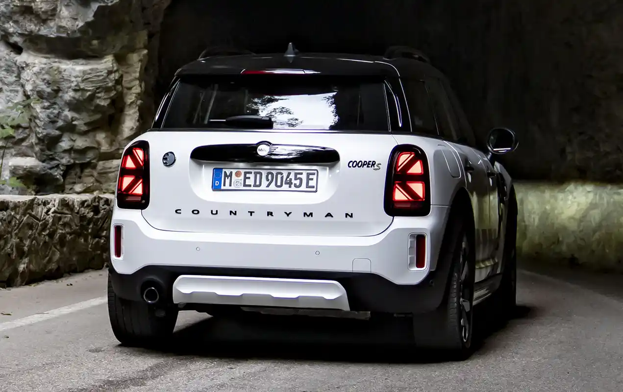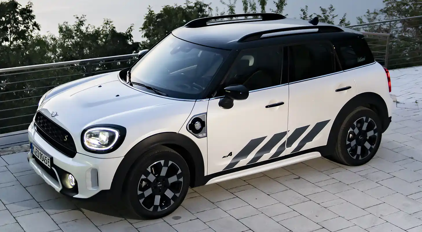 Two drives with a total of 162 kW/220 hp system output deliver sporty driving fun on and off the road. The front wheels are driven by a three-cylinder engine with 92 kW/125 hp, and the rear wheels are powered by an electric motor generating 70 kW/95 hp. The MINI Cooper SE Countryman ALL4 (combined fuel consumption: 2.1 – 1.7 l/100 km according to WLTP, 2.1 – 1.9 l/100 km according to NEDC; combined power consumption: 15.5 – 14.8 kWh/100 km according to WLTP, 14.8 – 14.1 kWh/100 km according to NEDC, CO2 combined emissions: 47 – 39 g/km according to WLTP, 48 – 44 g/km according to NEDC) excels with maximum traction and driving stability even off paved roads. With an electric range of 51 kilometres, the MINI Cooper SE Countryman ALL4 can also be driven in sporty style in urban environments without producing any local emissions.